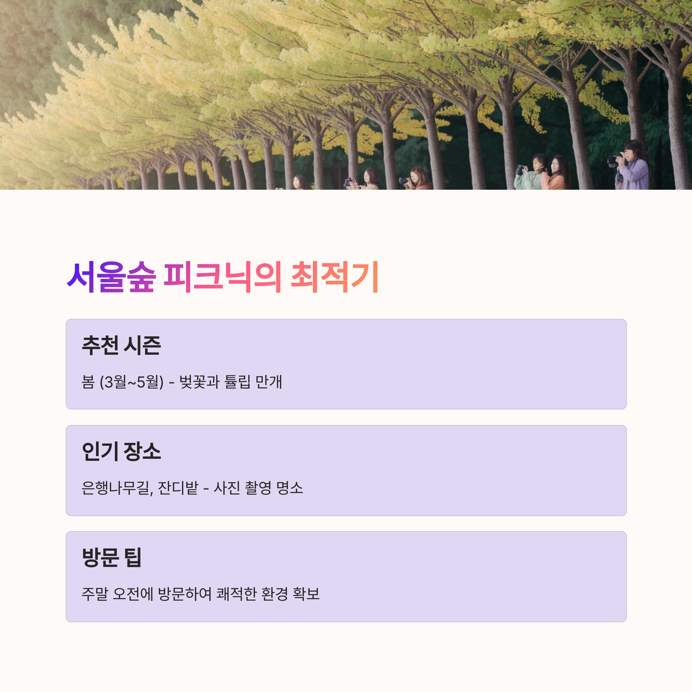 봄철 피크닉은 서울숲 방문이 반드시 포함되어야 합니다.