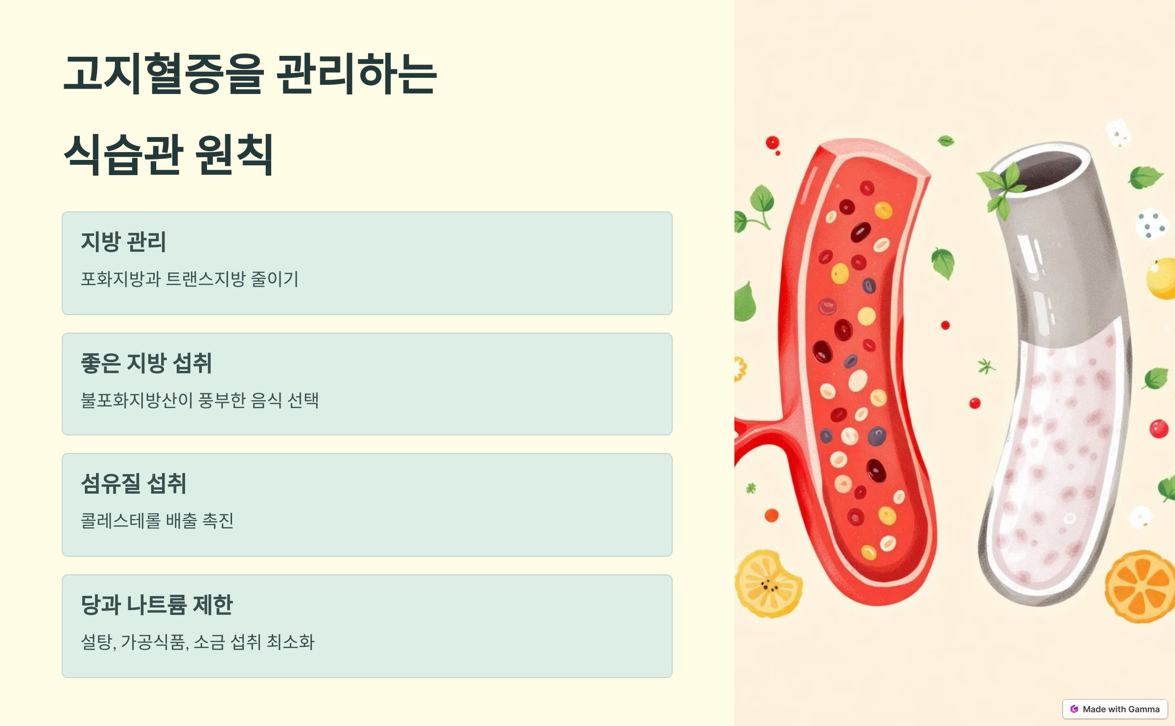 고지혈증 좋은 음식 BEST 10 – 꼭 챙겨 먹어야 할 식품고지혈증은 혈액 속 콜레스테롤과 중성지방 수치가 높아지는 질환으로,방치하면 심혈관 질환(심근경색, 뇌졸중)으로 이어질 수 있습니다.하지만 올바른 식습관을 유지하면 콜레스테롤 수치를 조절하고 혈관 건강을 지킬 수 있습니다.오늘은 고지혈증 예방과 관리에 좋은 음식 10가지를 소개해 드리겠습니다.목차고지혈증을 관리하는 식습관 원칙고지혈증 좋은 음식 BEST 10고지혈증에 나쁜 음식 피하는 방법고지혈증 예방을 위한 올바른 식습관결론고지혈증을 관리하는 식습관 원칙고지혈증을 예방하고 개선하려면 LDL(나쁜 콜레스테롤)은 낮추고, HDL(좋은 콜레스테롤)은 높이는 식단이 중요합니다.✅ 포화지방과 트랜스지방 줄이기✅ 불포화지방산이 풍부한 음식 섭취✅ 섬유질이..