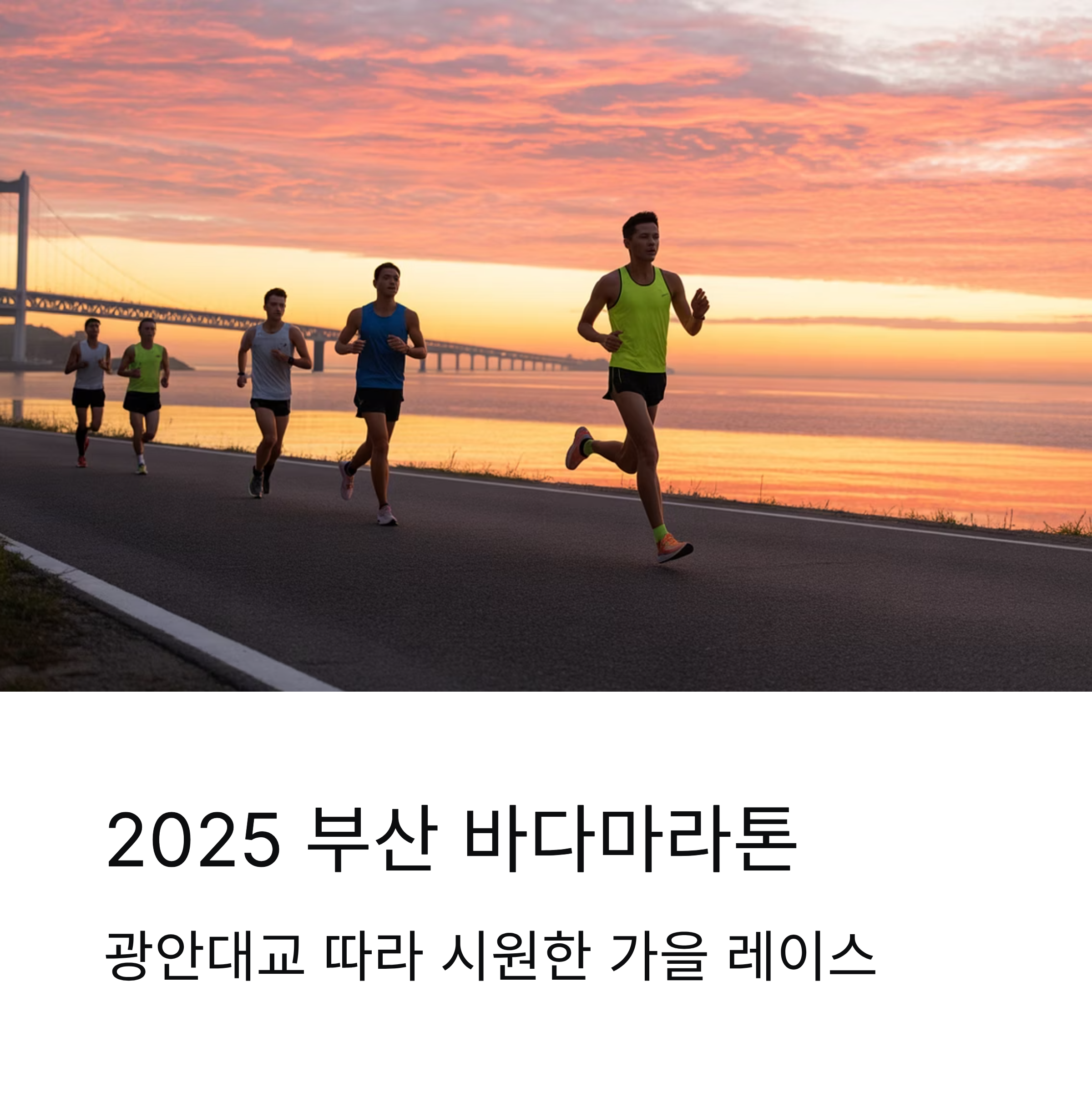 2025 부산 바다마라톤 참가 안내광안대교 따라 시원한 가을 레이스푸른 바다와 시원한 가을 바람을 맞으며 광안대교를 바라보며 달릴 수 있는 **2025 부산 바다마라톤(Busan Sea Marathon)**이 오는 10월 26일(일) 개최됩니다. 올해도 5km·10km 두 코스로 진행되는 이 마라톤은 도심 속에서 바다의 여유를 만끽하며 달릴 수 있는 하이브리드 레이스로 많은 러너들의 사랑을 받고 있습니다.이번 글에서는 부산 바다마라톤 참가를 계획 중인 분들을 위해 일정, 코스, 준비물, 참가 꿀팁까지 모두 정리해 드립니다.부산 바다마라톤 2025 주요 일정 및 기본 정보대회명: 2025 부산 바다마라톤 (Busan Sea Marathon)일정: 2025년 10월 26일(일)출발 시각: 오전 8시 20분 ..