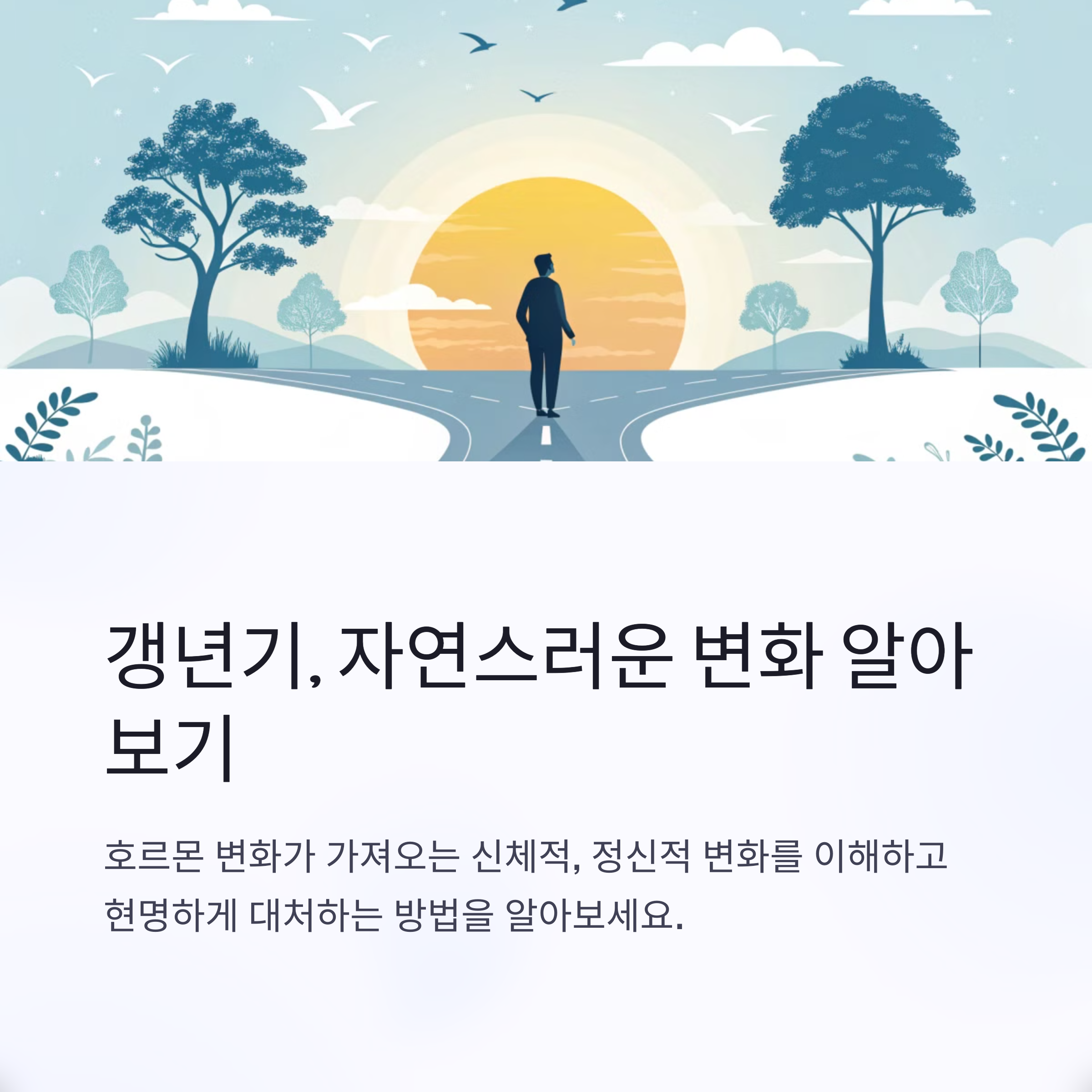 40대 후반부터 50대 초반 사이, 누구나 겪게 되는 인생의 전환점. 갱년기를 어떻게 잘 이겨내느냐에 따라 삶의 질이 완전히 달라질 수 있습니다. 여성과 남성 각각의 특성과 증상에 맞는 완화법을 소개합니다.