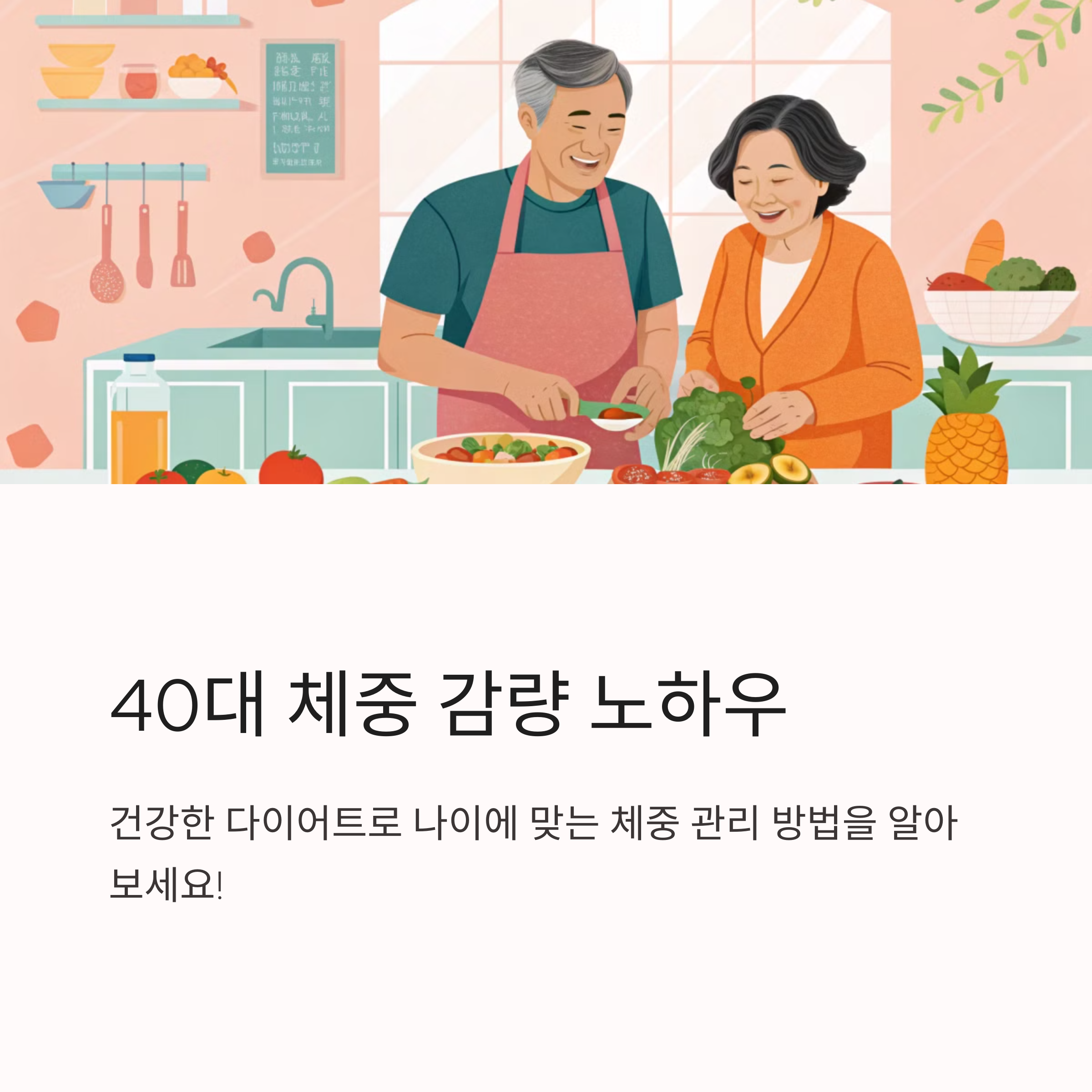 40대는 이제 평생 체중 관리를 위한 시작점입니다. 단기 성과보다 장기 목표를 세워야 요요 없는 건강한 체중 감량이 가능합니다.