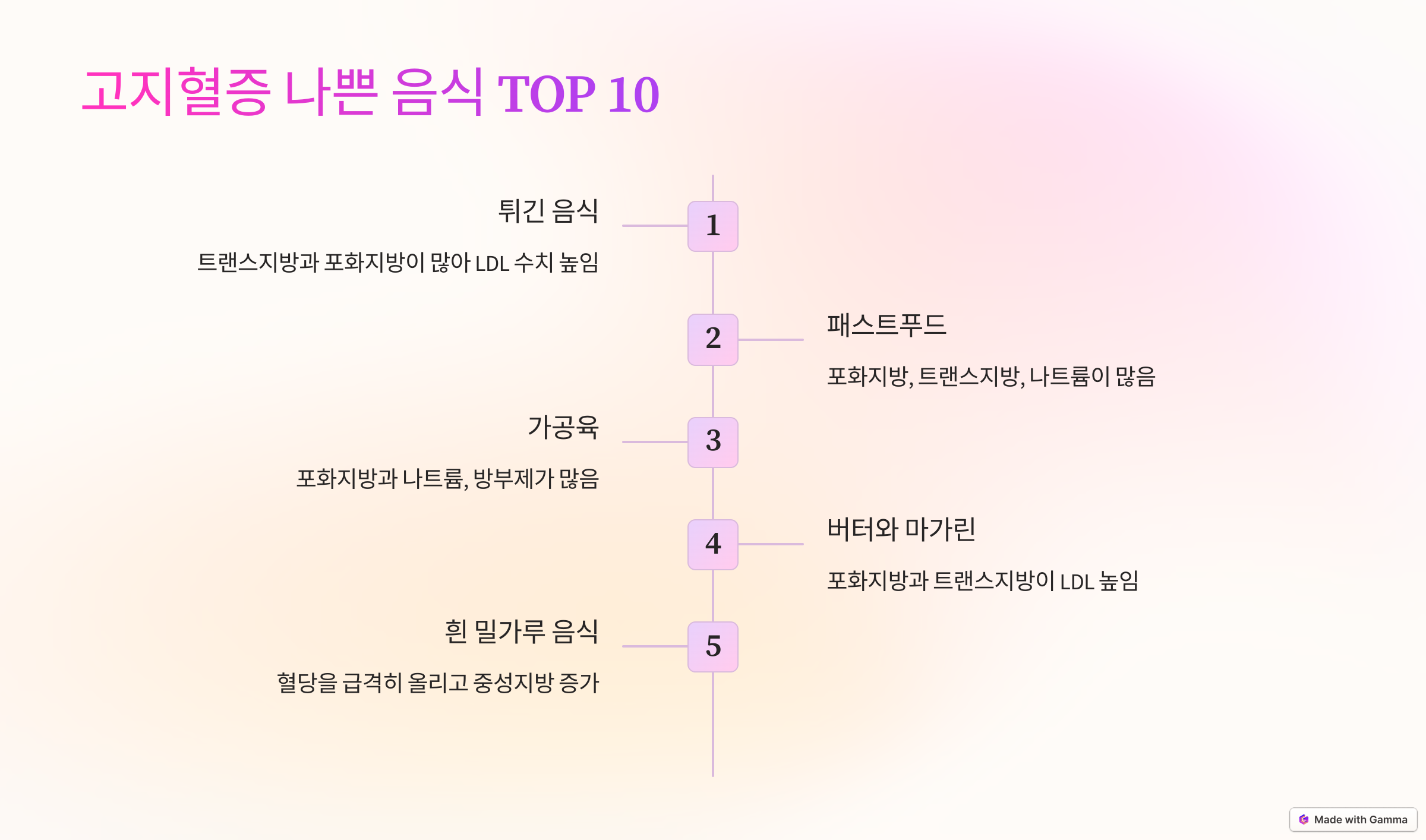 이제, 고지혈증 환자가 피해야 할 음식 TOP 10을 확인해볼까요?