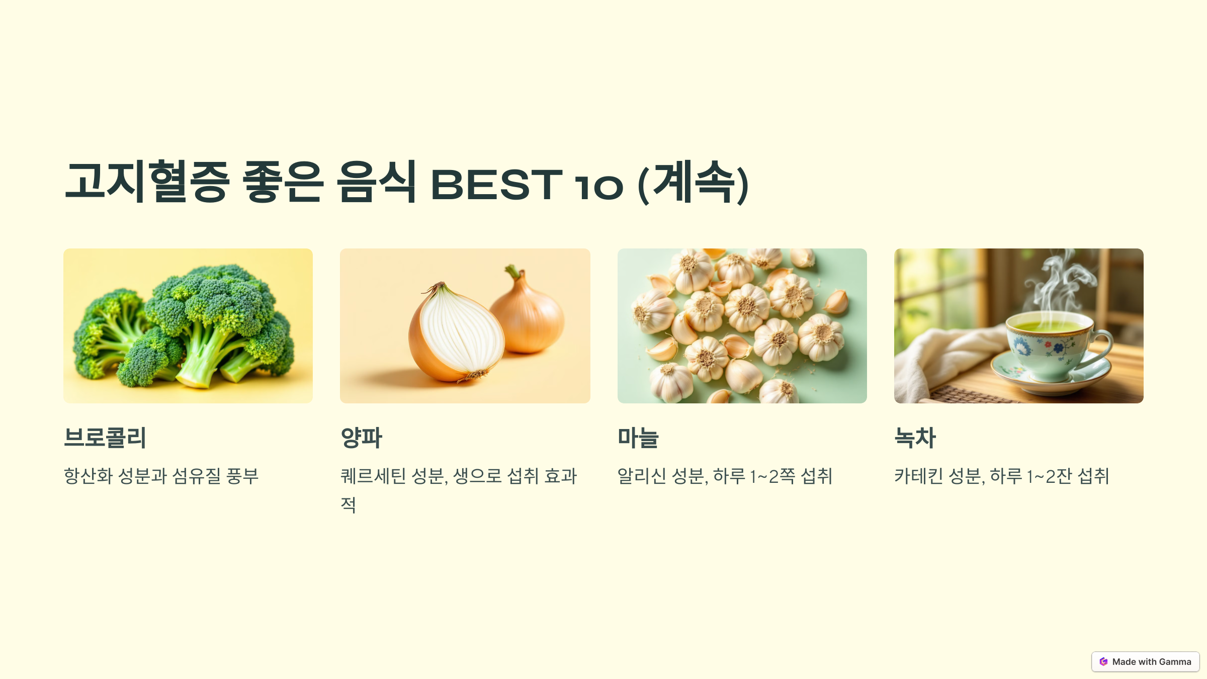 오늘은 고지혈증 예방과 관리에 좋은 음식 10가지를 소개해 드리겠습니다.