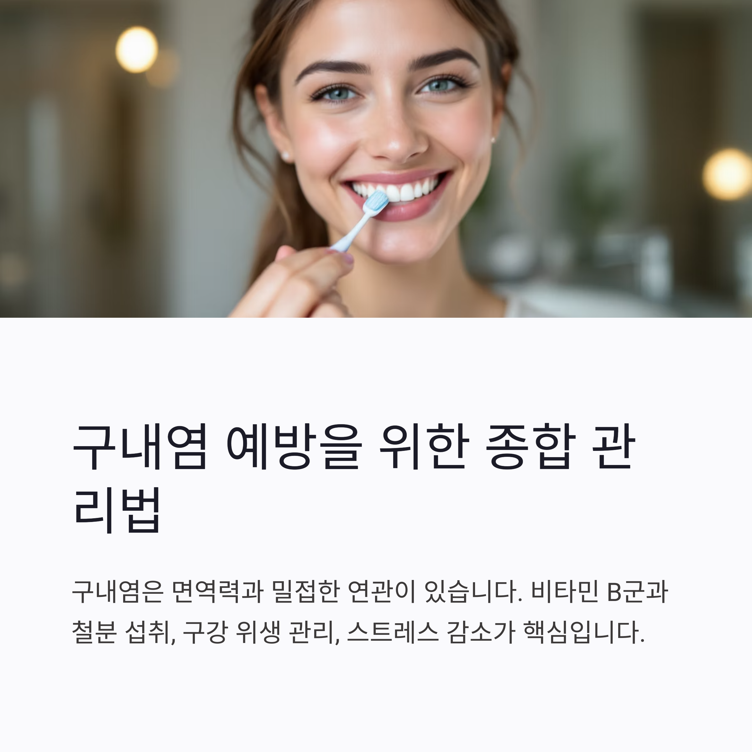 구강 위생과 정기적인 건강관리는 구내염 발병을 줄일 수 있는 핵심 요소입니다.