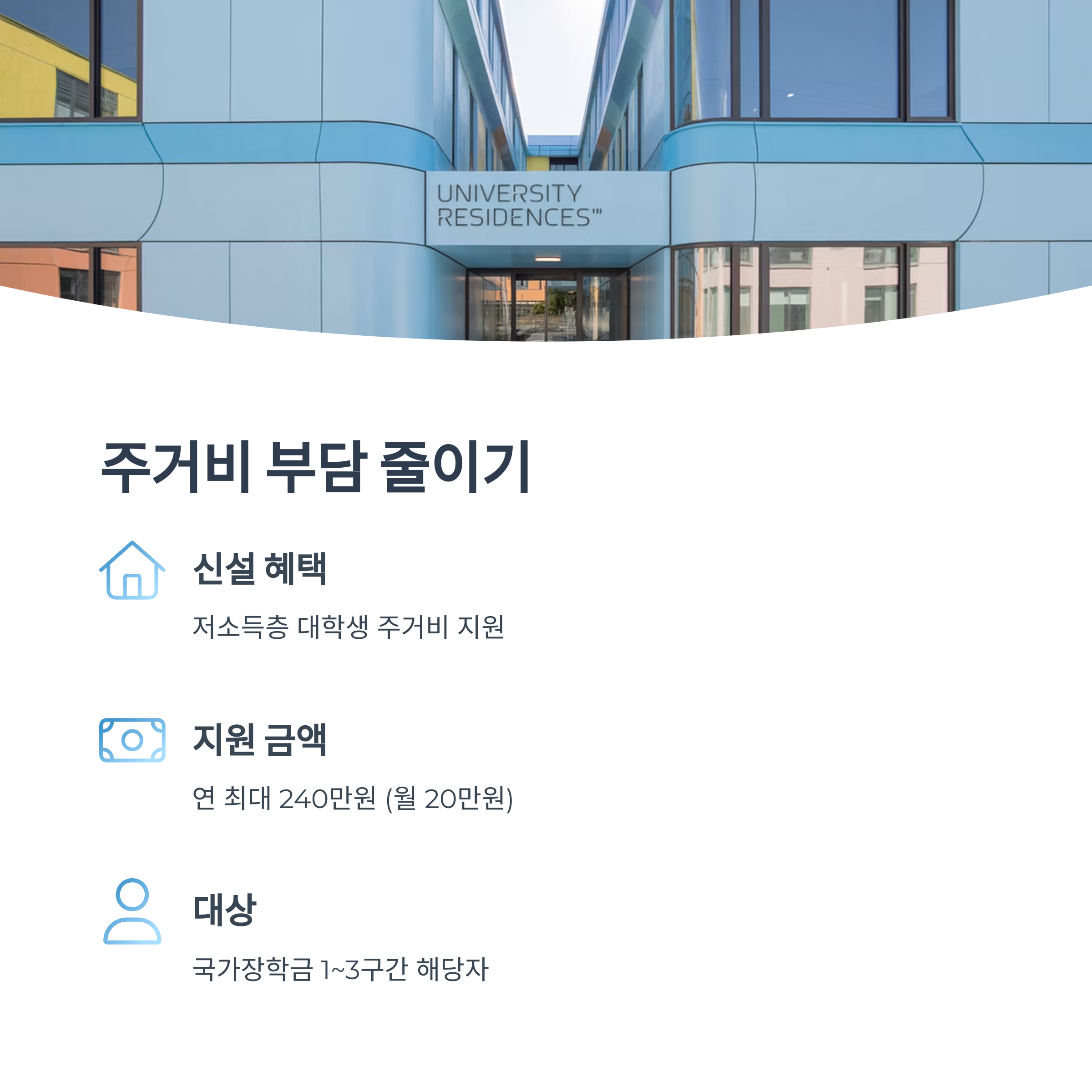 - 저소득층 대학생 대상 주거비 지원