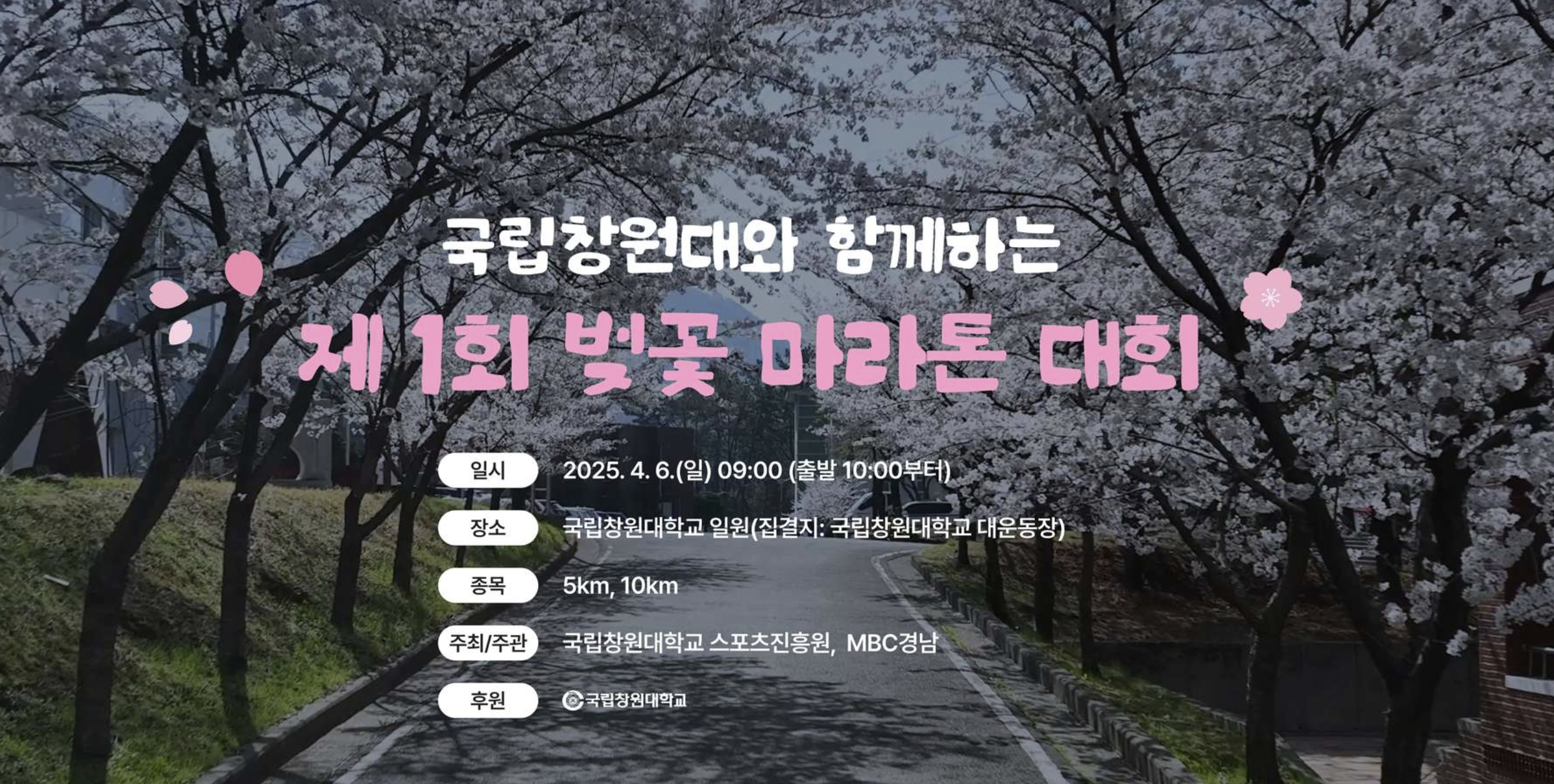 국립 창원대학교와 MBC경남이 주관하는 벚꽃마라톤 입니다.