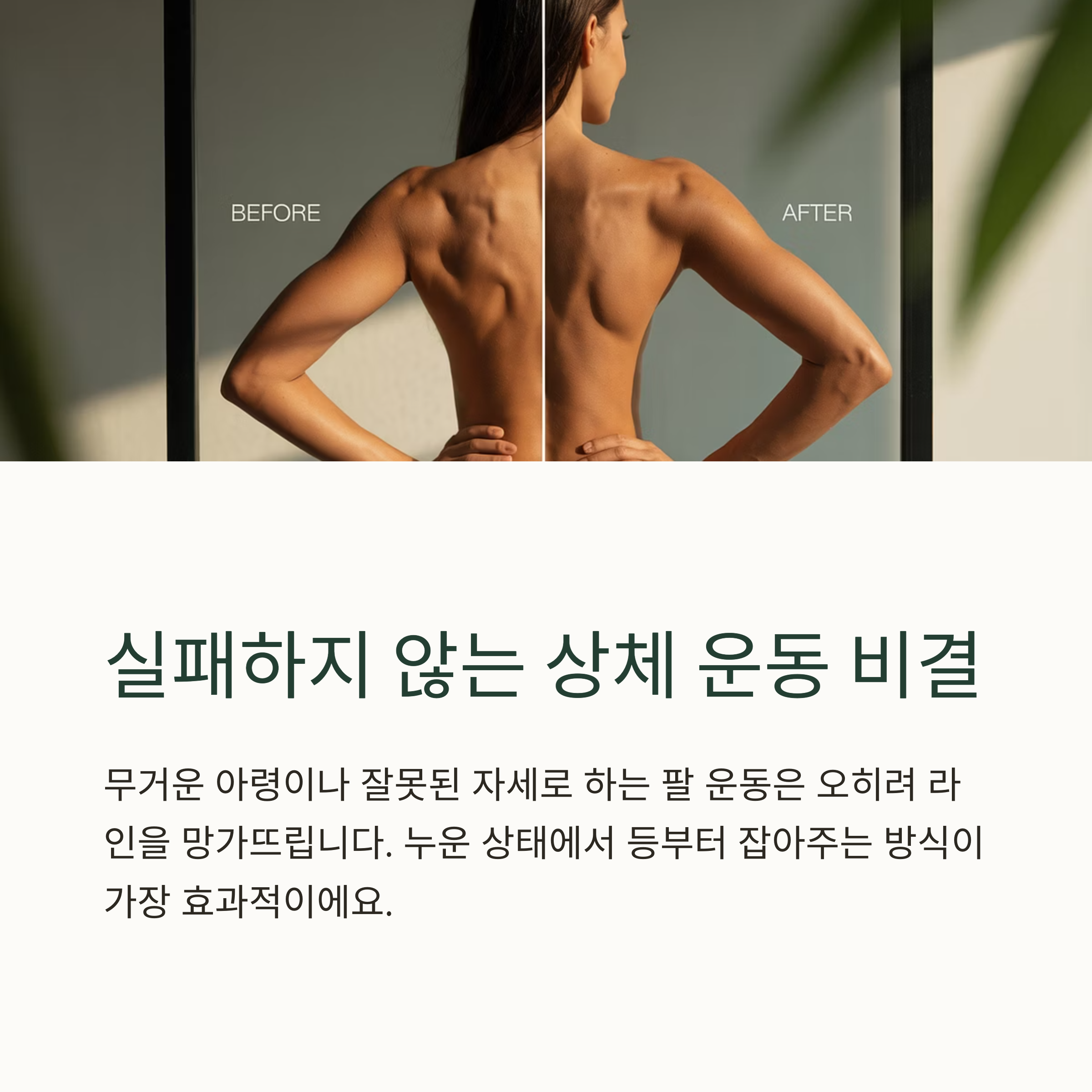 하루 10분, 등과 팔을 부드럽게 움직이는 것만으로 등 라인과 팔 라인에 진짜 변화가 시작됩니다. 헬스장 안 가도 괜찮습니다. 오늘도 내 몸을 위한 조용한 투자, 함께 실천해보세요.