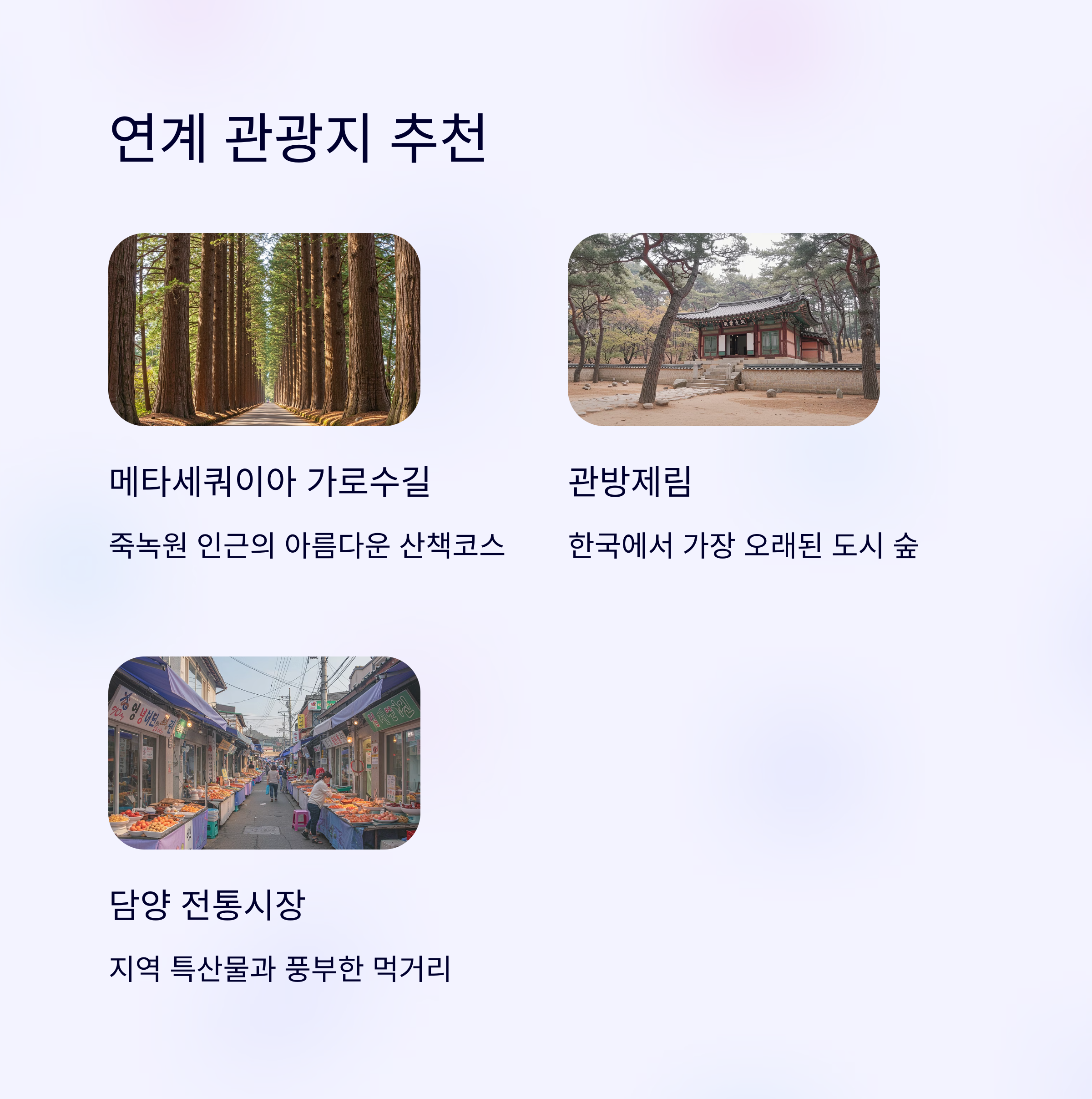 담양 죽녹원 인근에는 다양한 관광지가 있어 연계 방문이 용이합니다.