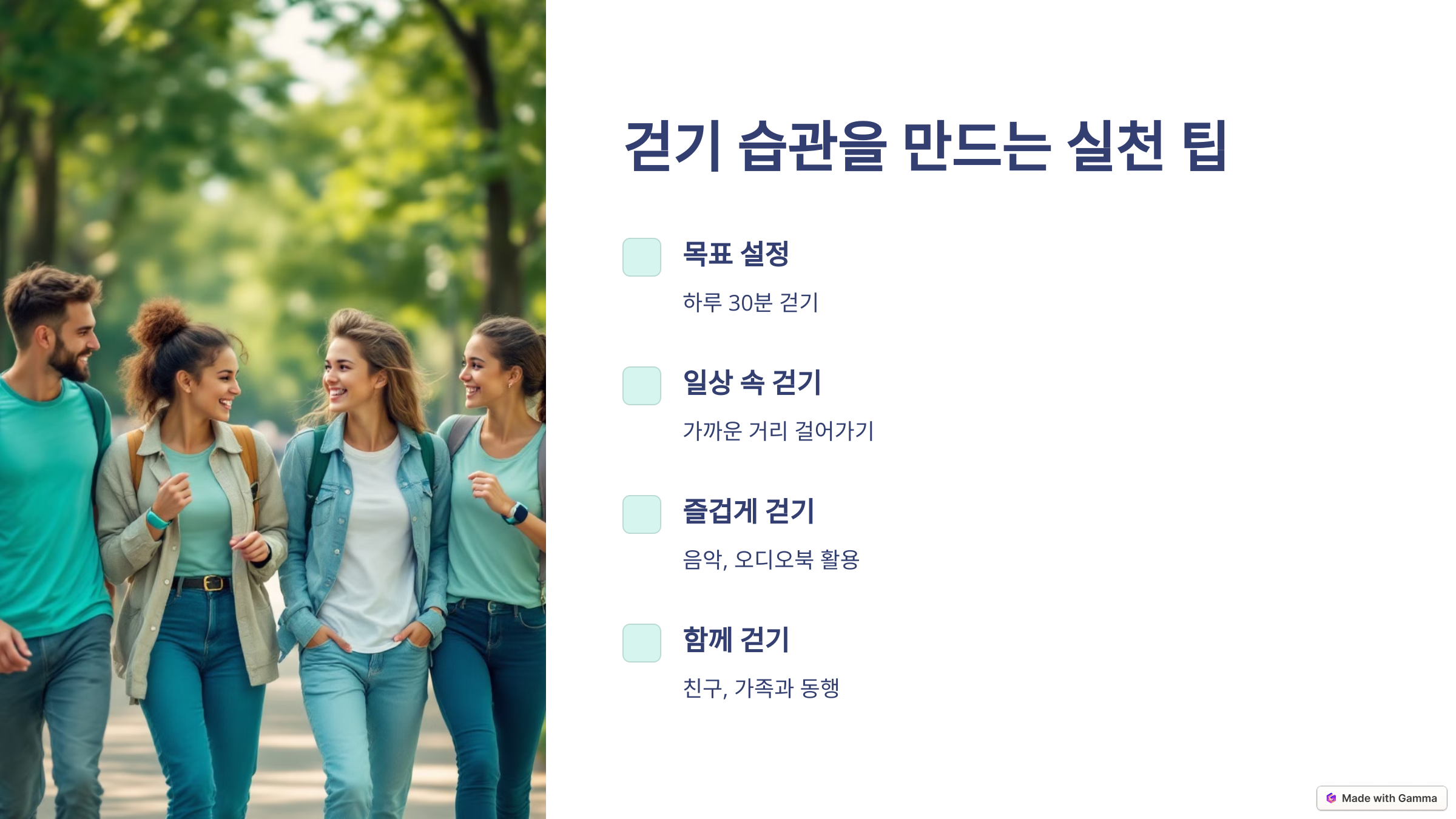 꾸준히 실천하면 어느새 걷기가 생활의 일부가 될 거예요!