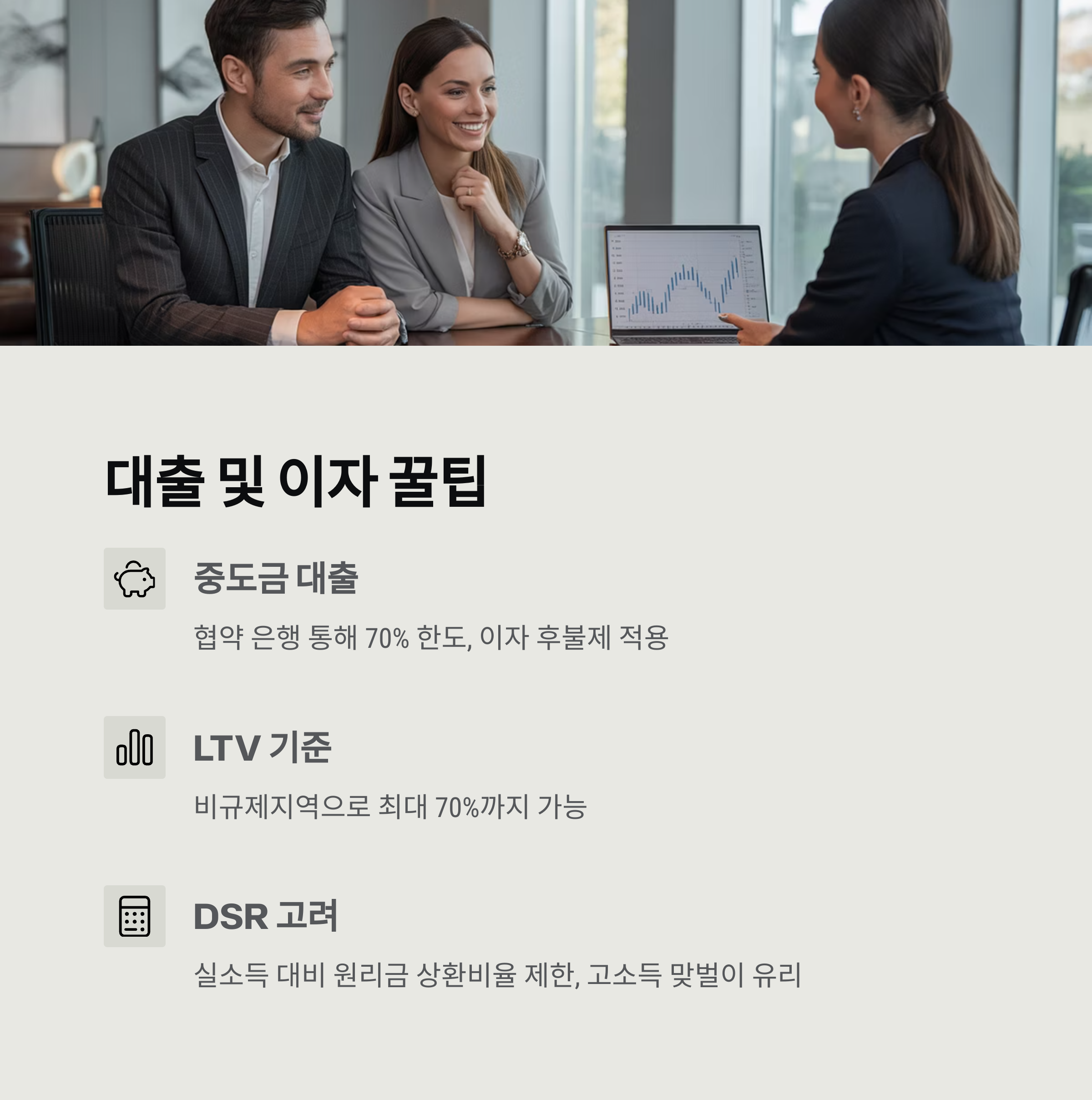 • 중도금 대출: 보통 분양 시 협약 은행을 통해 집단대출 진행