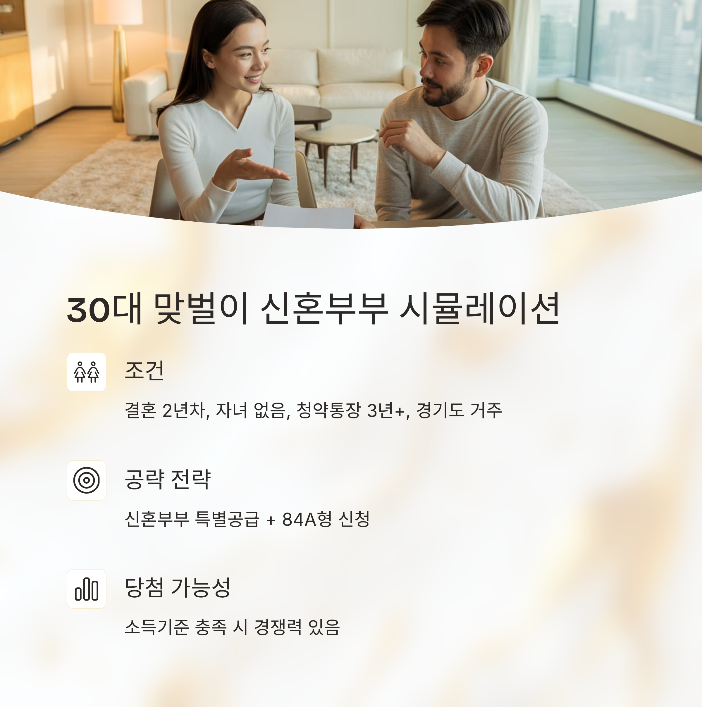 - 공략 전략: 신혼부부 특별공급 + 84A형 신청