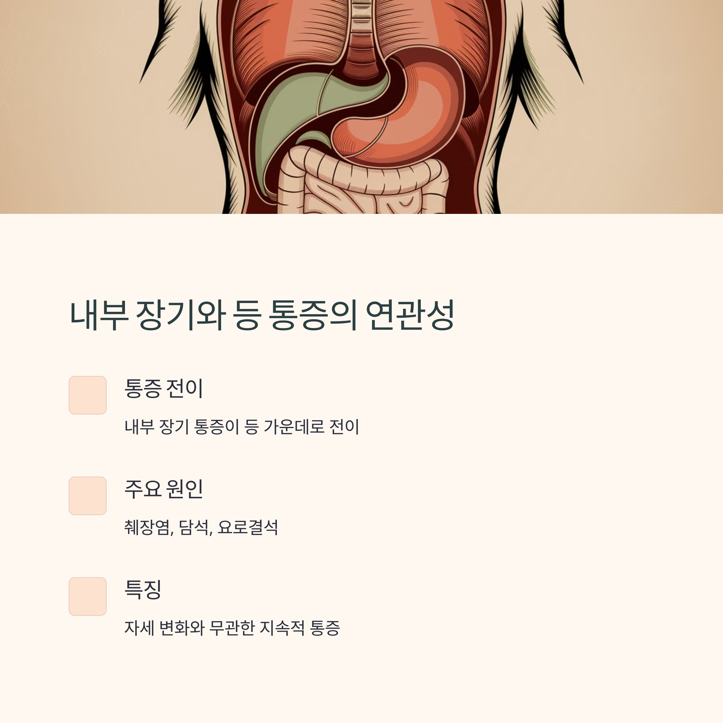 하지만 이러한 통증은 자세나 운동 문제에 국한되지 않습니다. 예를 들어 췌장염이나 심혈관 질환처럼 내부 장기 문제가 통증을 유발하기도 합니다.