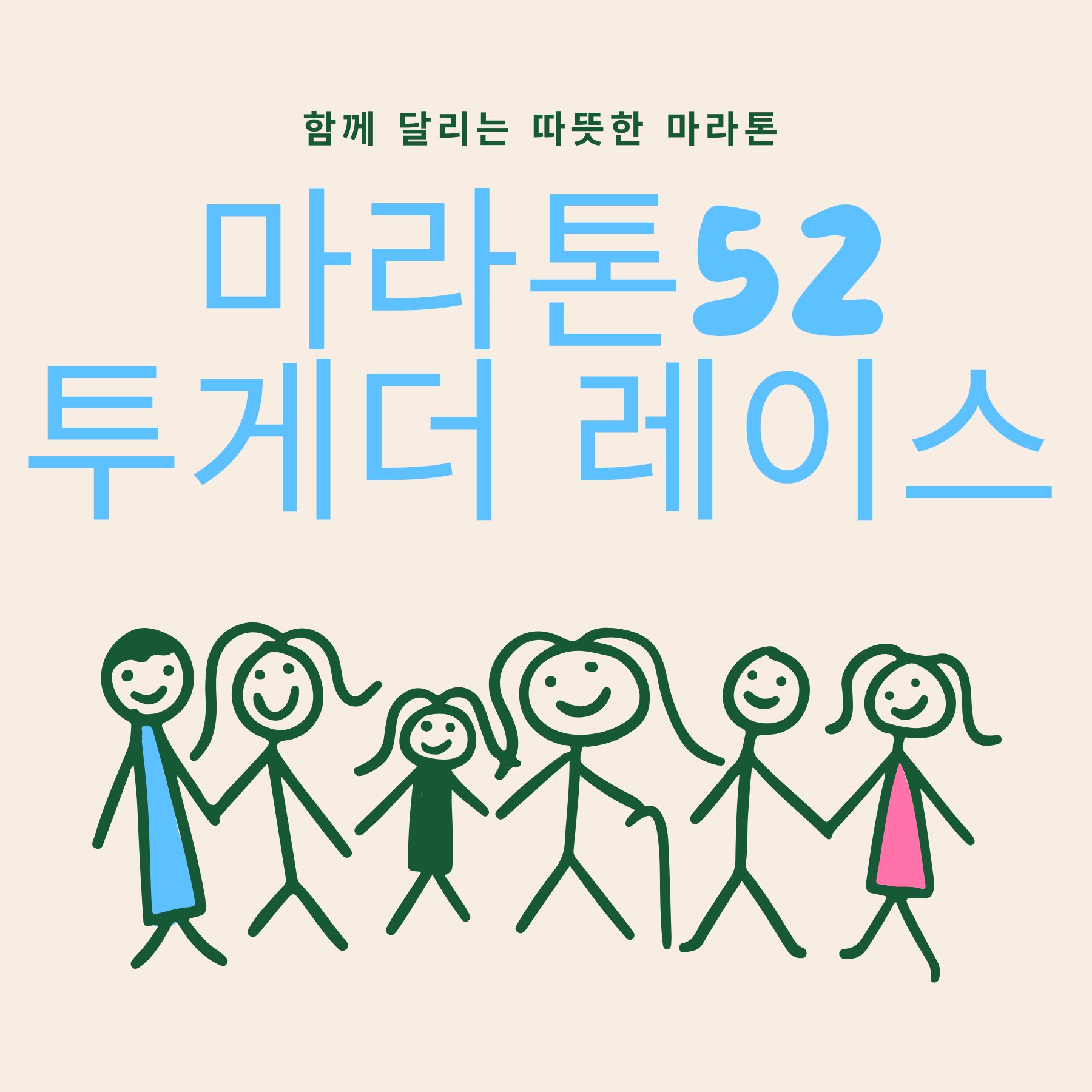 마라톤52 투게더레이스는 "wegotogether"라는 슬로건으로 매주 대회를 진행합니다. 1m1원 기부 마라톤