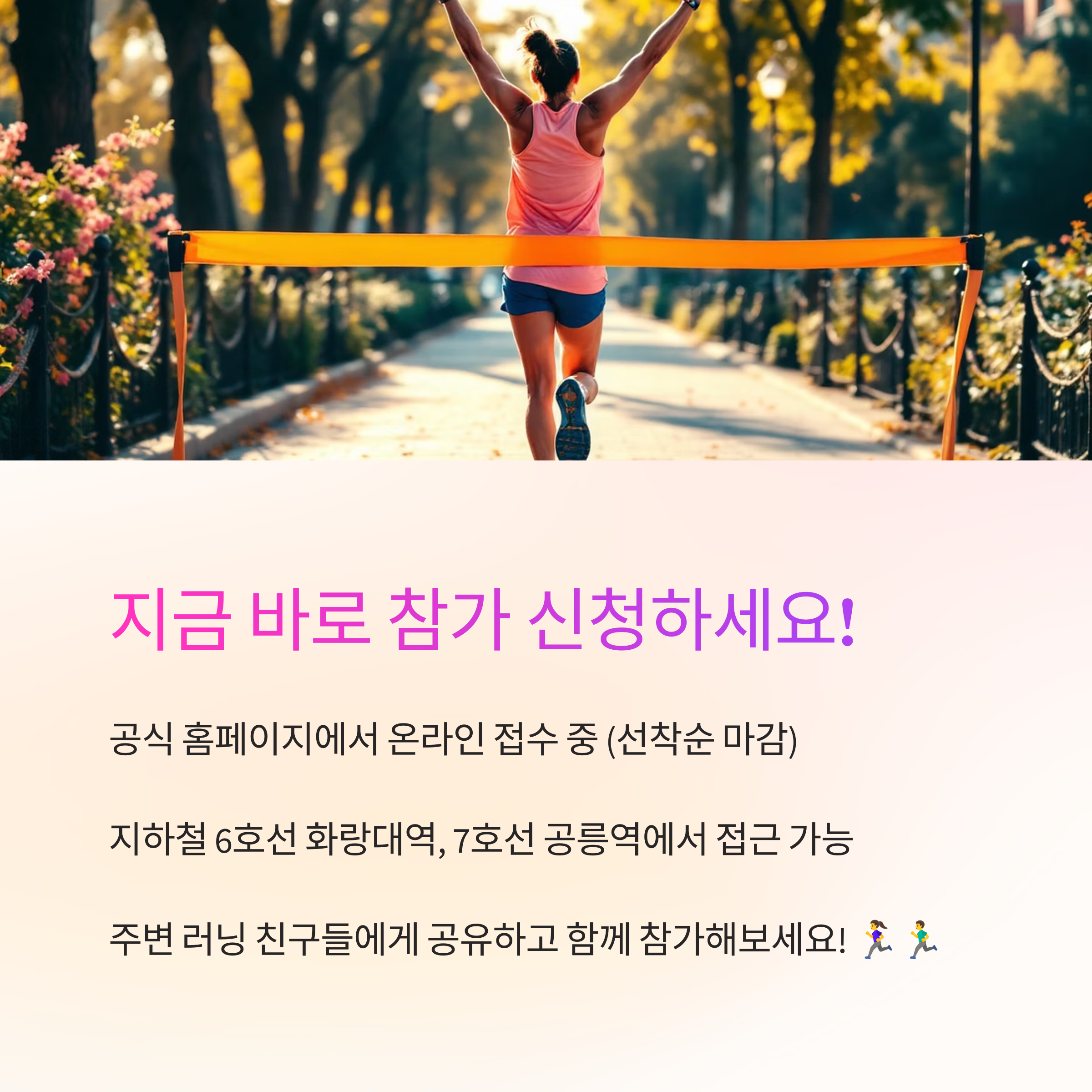 | 참가 코스 | 하프 / 10km / 5km | 평탄한 우이천 러닝 코스 |
