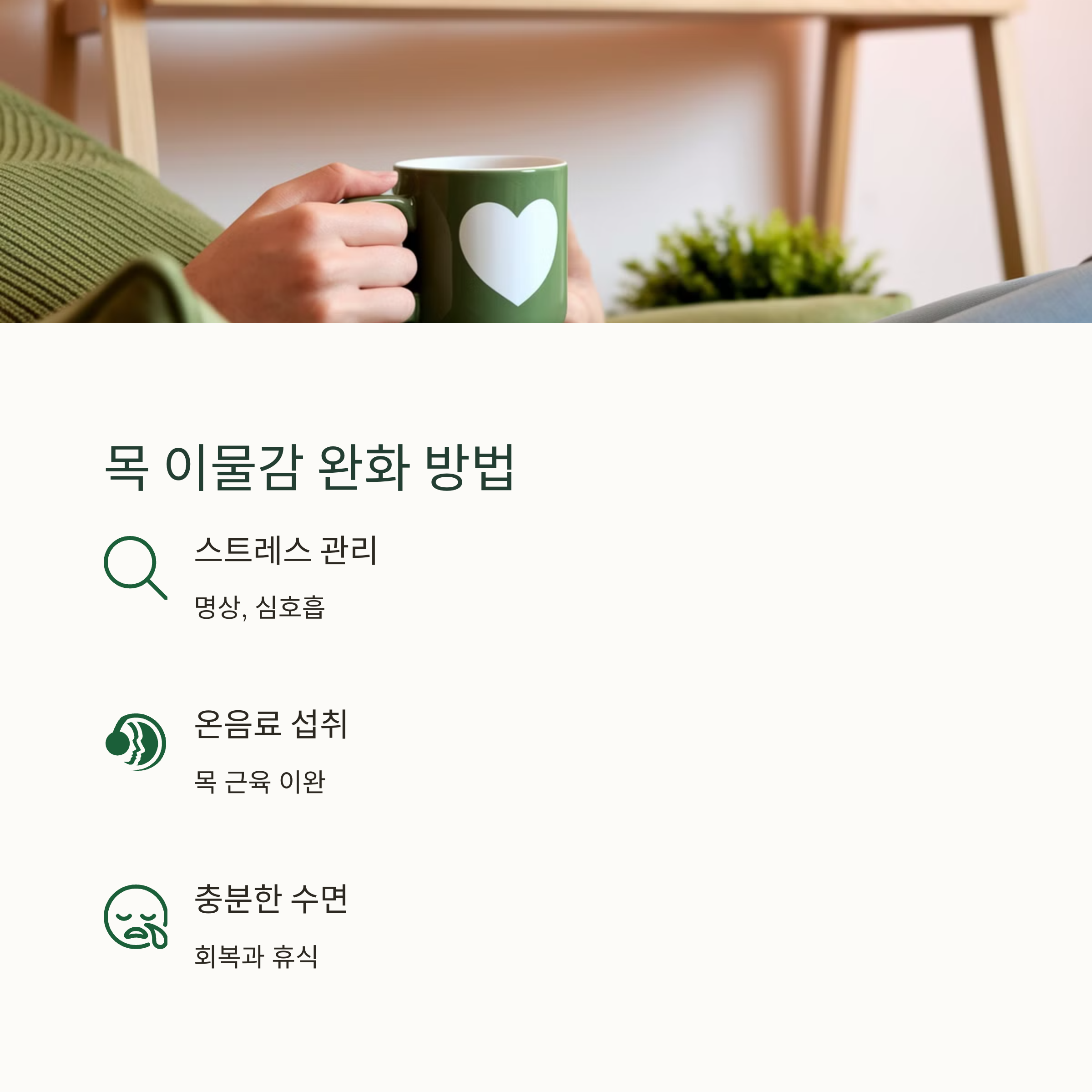 | Q. 목 이물감을 완화하기 위한 방법은 무엇인가요? |