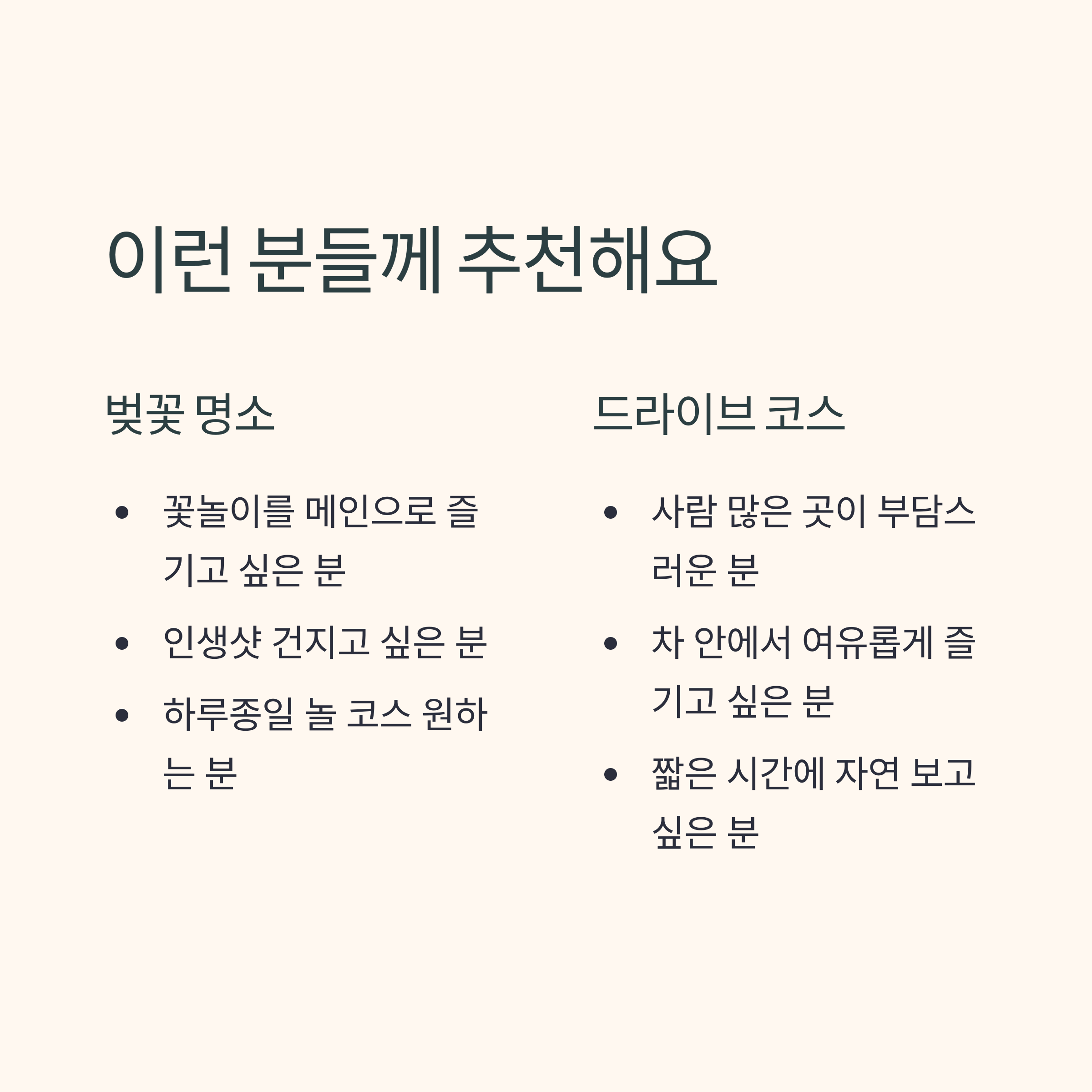 - 꽃놀이 자체를 메인 이벤트로 즐기고 싶은 분