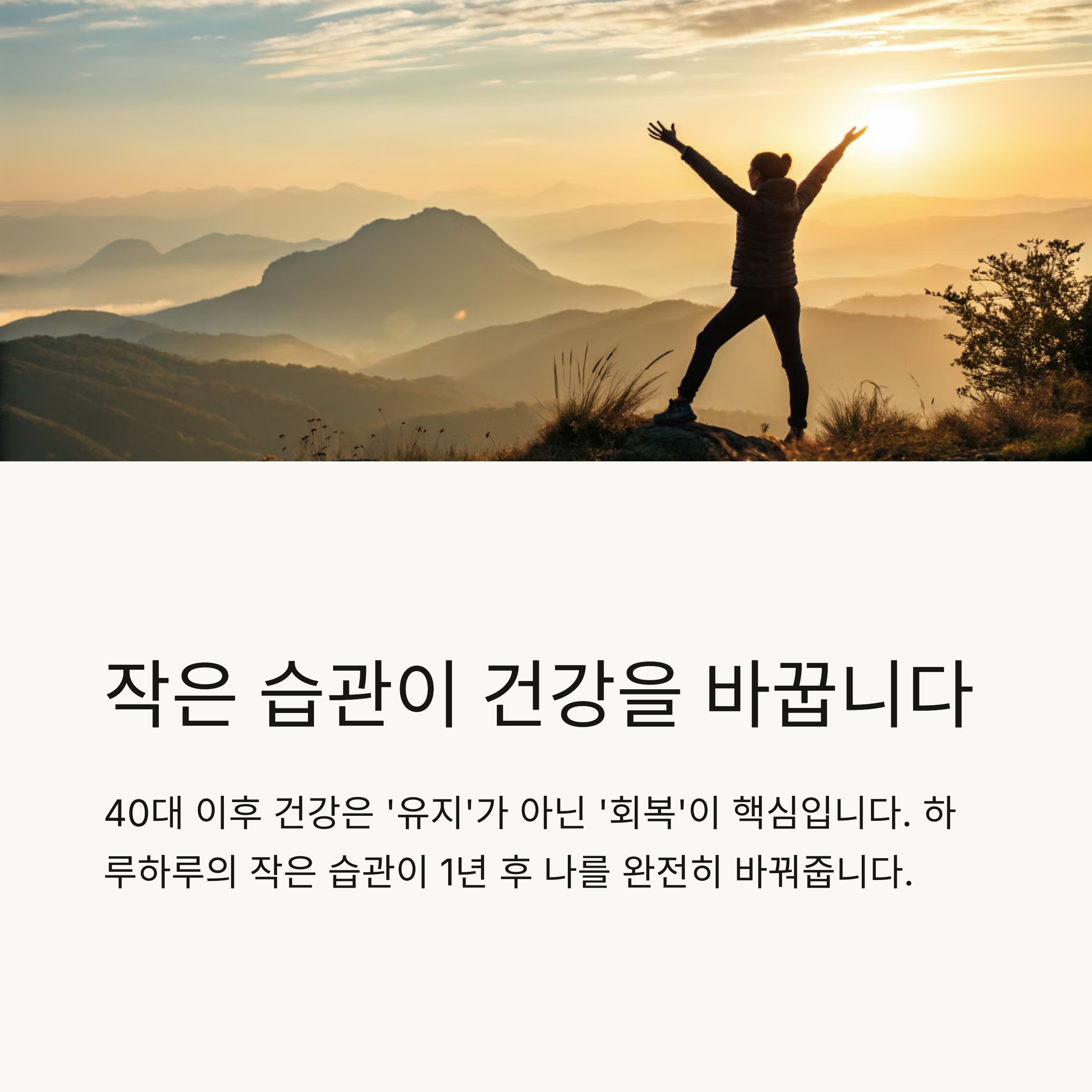 하루하루의 작은 습관이 1년 후 나를 완전히 바꿔줍니다. 당신의 건강 루틴도 오늘부터 새로 시작해보세요!