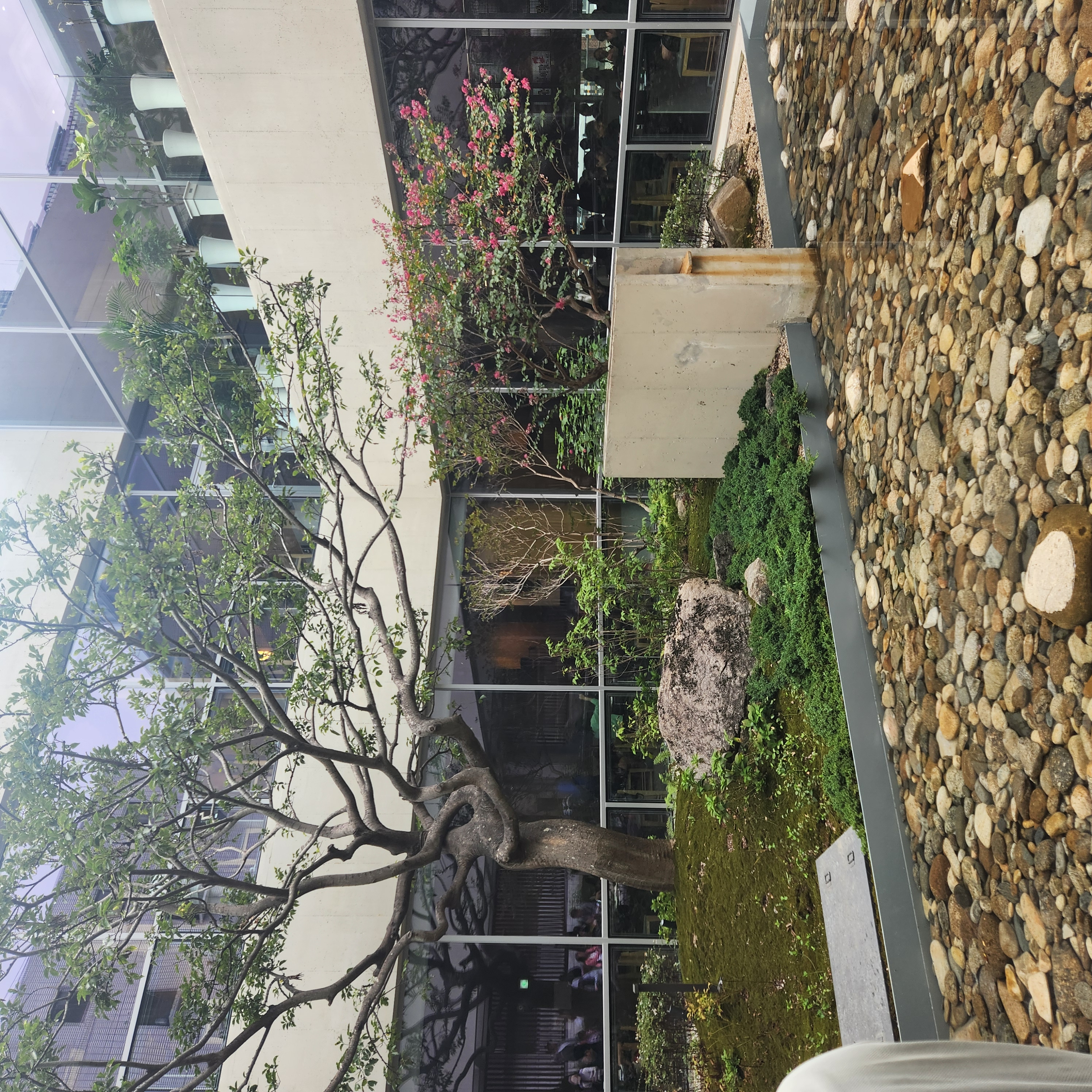 암소갈비의 외관은 모던하고 깔끔한 분위기입니다. 매장 앞에는 잘 정돈된 정원이 있어 대기 시간 동안 산책하듯 여유를 즐길 수 있었어요. 특히 유리창 너머로 보이는 인테리어와 식물들이 자연과 어우러져 있어 도심 속 힐링 느낌도 들었답니다.