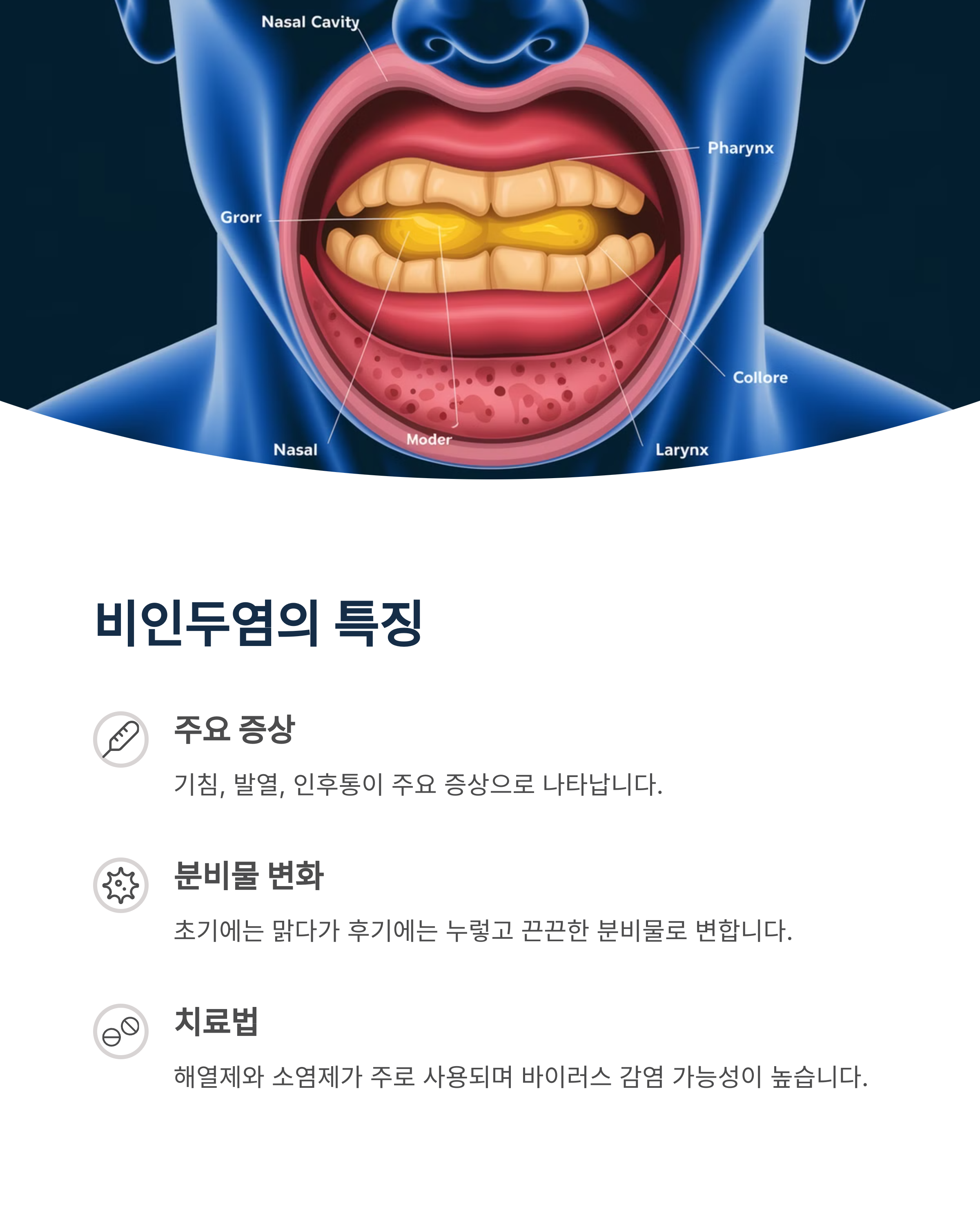 비인두염은 주로 계절성 감기에 의해 발생하며, 고열과 두통이 주요 증상으로 나타납니다.