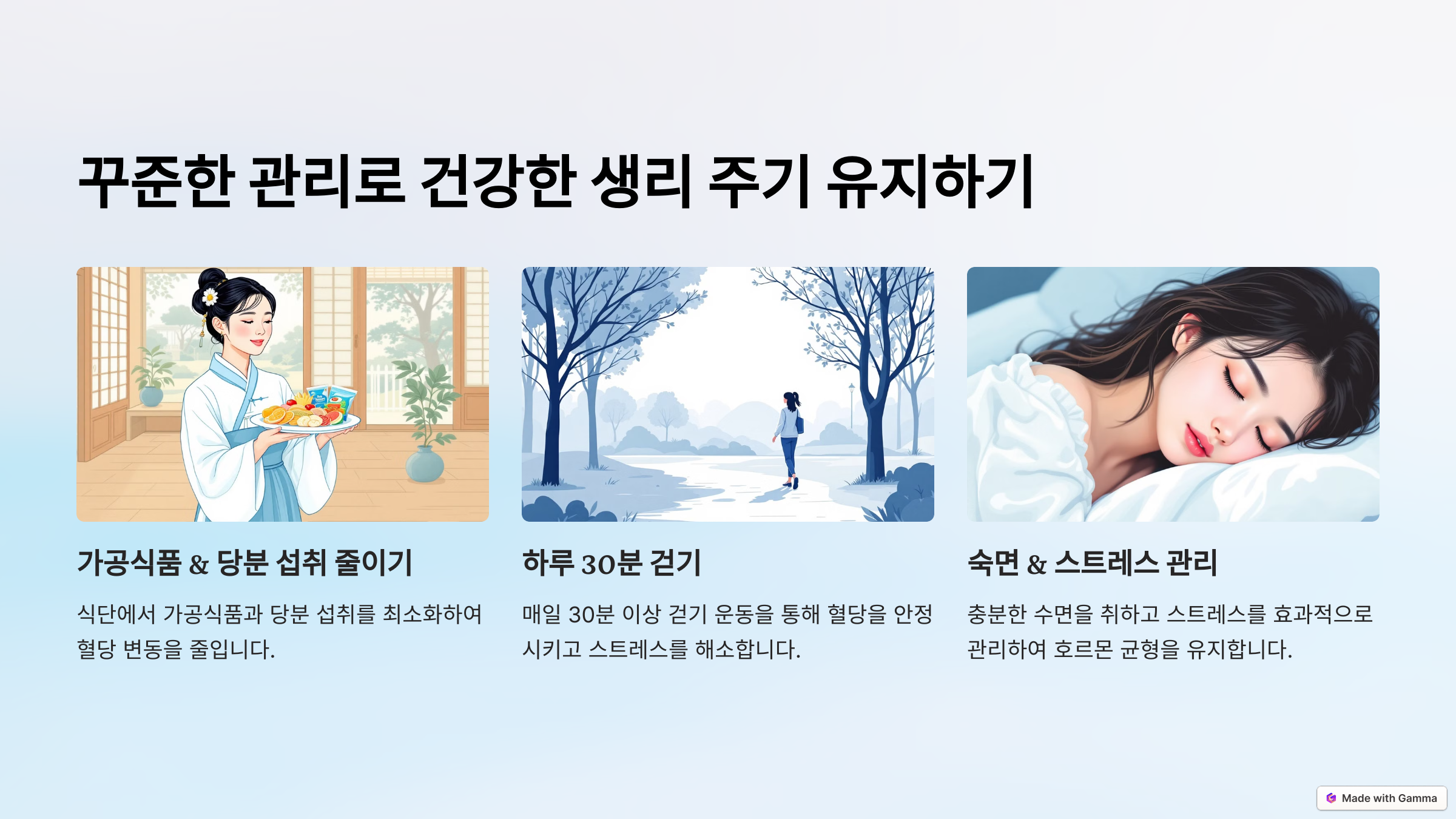 - 꾸준한 관리로 건강한 생리 주기 유지하기