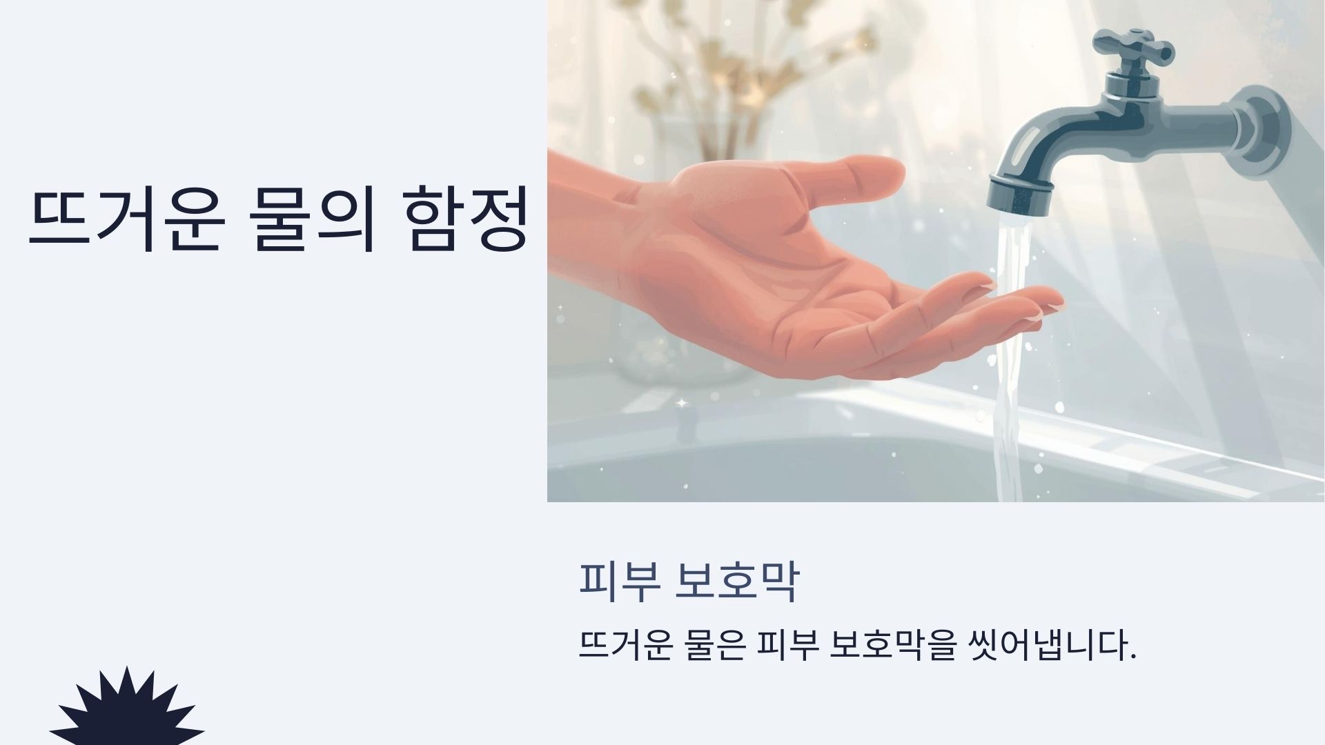 • 뜨거운 물(40℃ 이상)은 이 유분막을 단번에 녹여버리는 역할을 합니다.