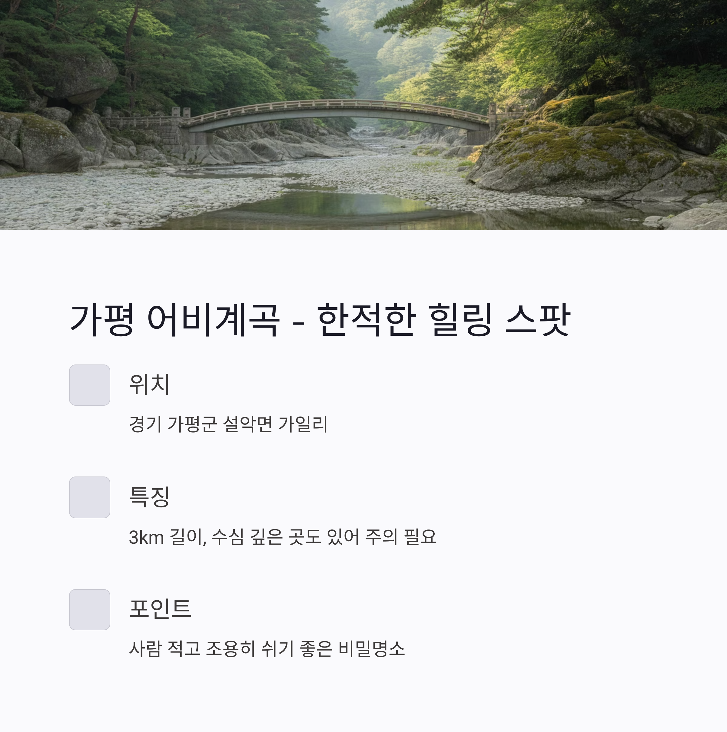6. 가평 어비계곡 – 한적한 힐링 스팟