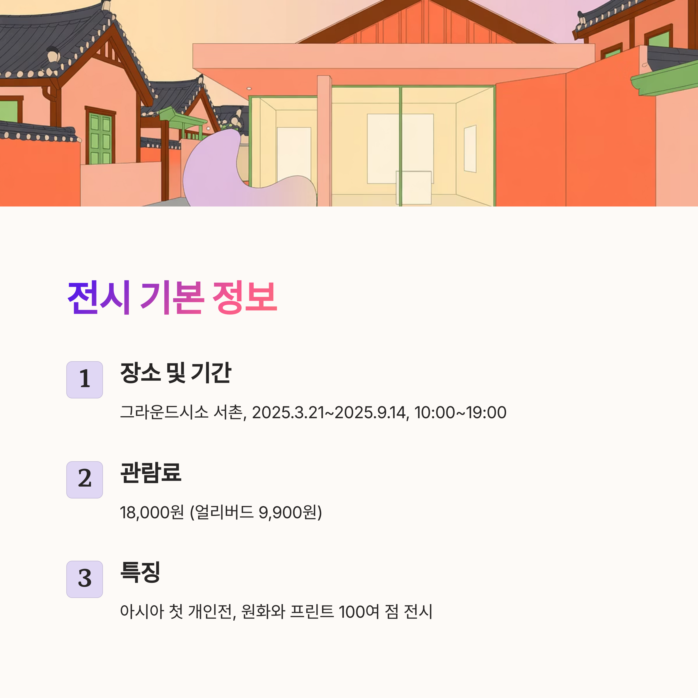 | 전시 일정 | 2025년 3월 21일 ~ 9월 14일, 오전 10시 ~ 오후 7시 |