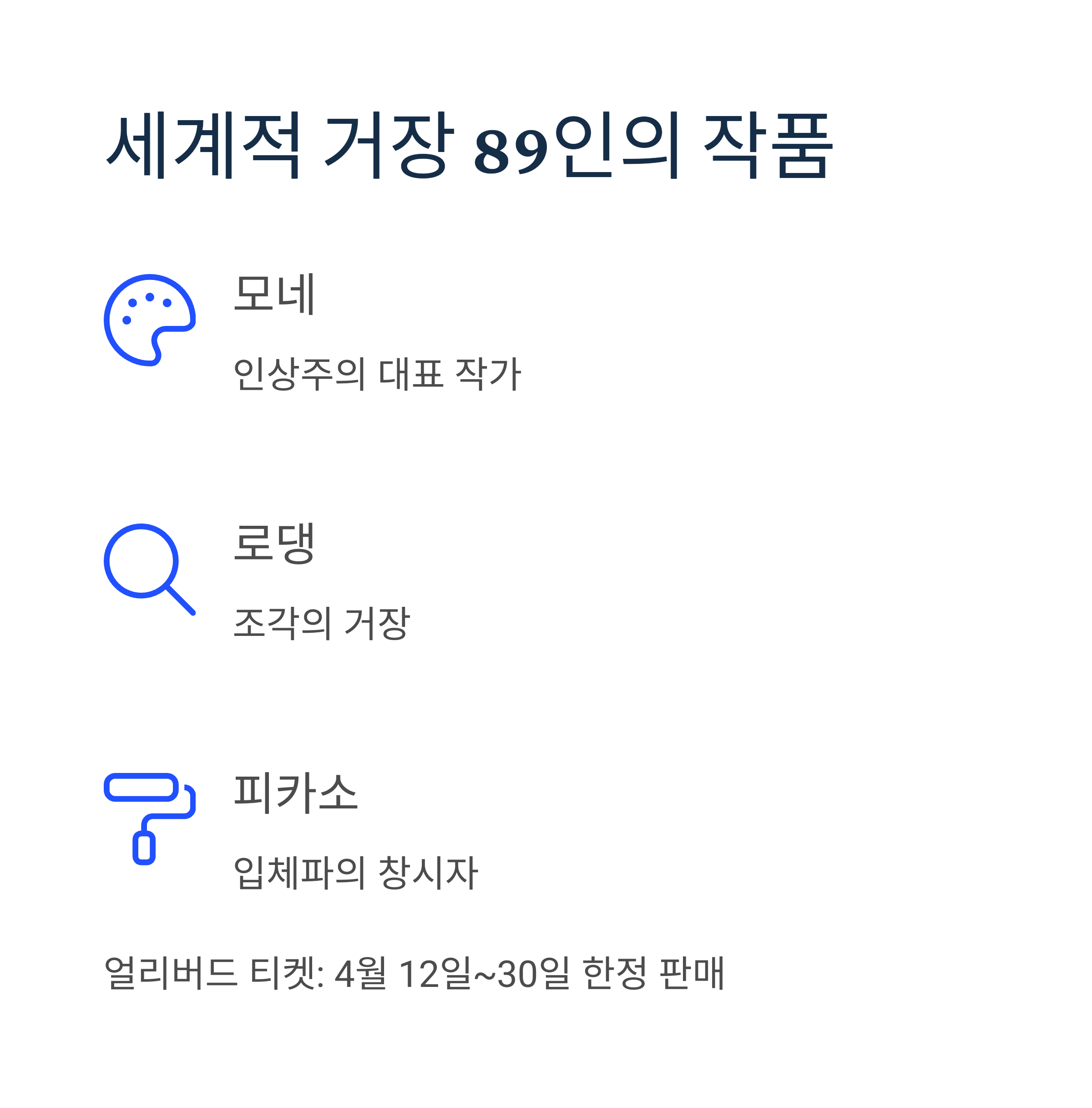 따뜻한 봄바람과 함께 서울 세종문화회관 미술관에서는 특별한 미술 전시가 열립니다. ‘모네에서 앤디워홀까지’라는 제목으로, 2025년 5월 16일부터 8월 31일까지, 세계적인 거장들의 대표작들을 한 자리에서 감상할 수 있는 기회가 마련되었습니다. 남아프리카공화국 요하네스버그 아트 갤러리의 엄선된 143점의 소장품이 전시되며, 모네, 로댕, 드가, 피카소, 앤디 워홀 등 총 89인의 작품들이 포함되어 있어 미술 애호가라면 절대 놓쳐서는 안 될 전시입니다. 이번 전시는 단순한 감상을 넘어서, 무료 오디오 가이드, 도슨트 프로그램, 한정판 굿즈샵까지 다양한 즐길 거리가 함께하며, 가족 단위 관람객이나 미술을 처음 접하는 분들에게도 유익한 시간을 선사할 예정입니다. 무엇보다 얼리버드 티켓 할인을 통해 정가 대비 최대 40%까지 저렴하게 입장할 수 있다는 점도 놓칠 수 없는 장점입니다.