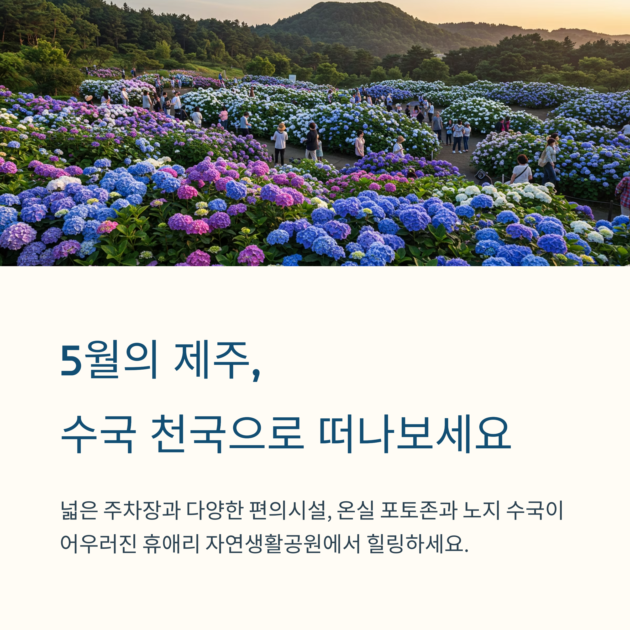 수국축제가 열리는 5월의 휴애리 자연생활공원은 서귀포 여행에서 놓칠 수 없는 명소입니다.