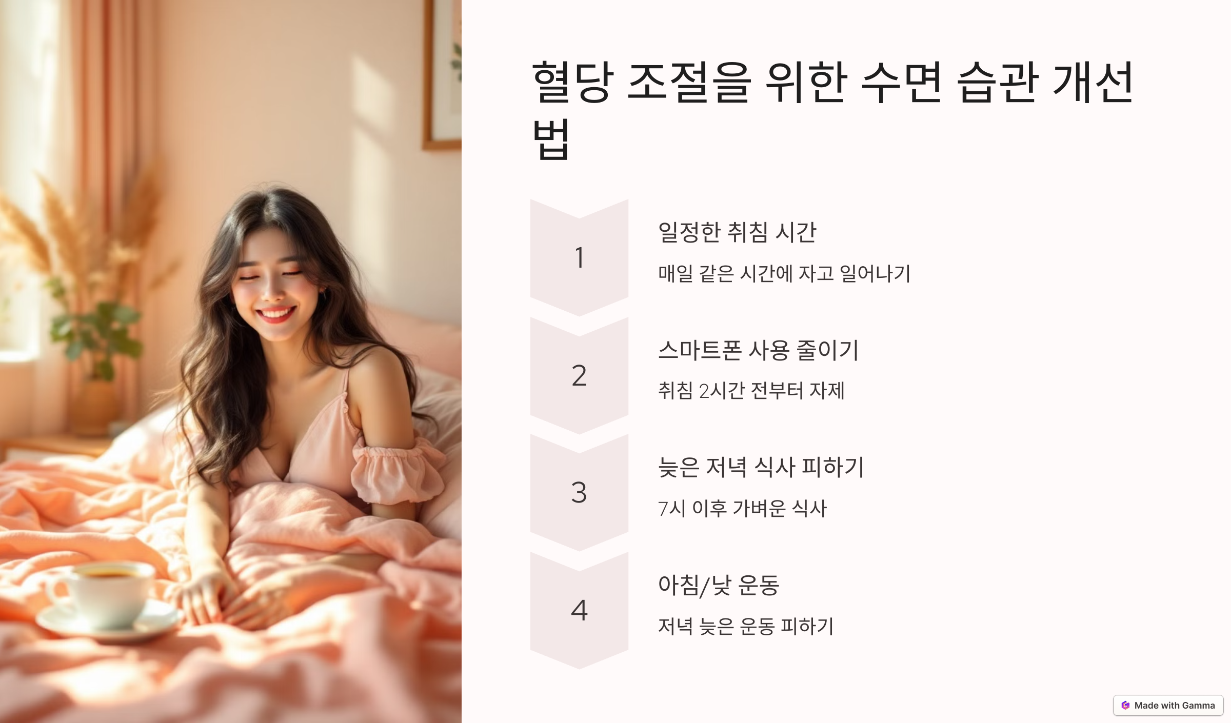 따라서 좋은 수면 습관을 만드는 것이 혈당 관리에도 필수적입니다!