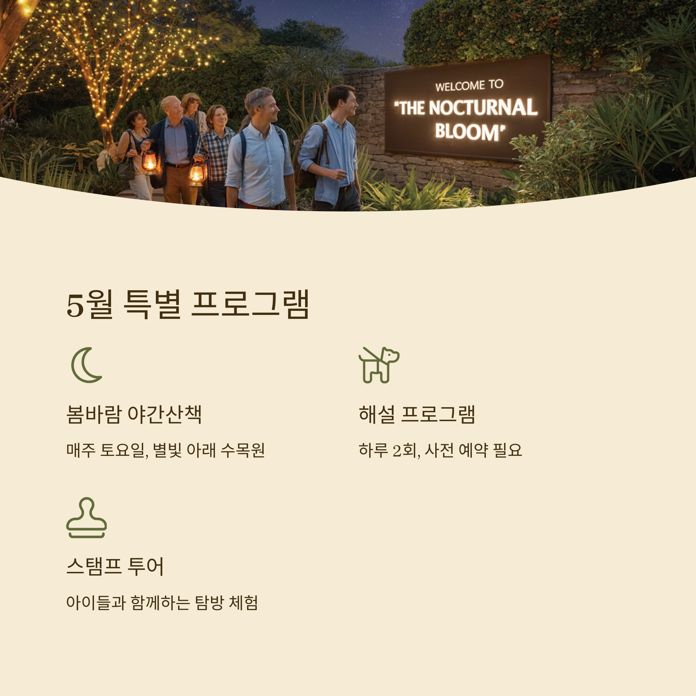 - 봄바람 야간산책: 매주 토요일, 별빛 아래 걷는 수목원