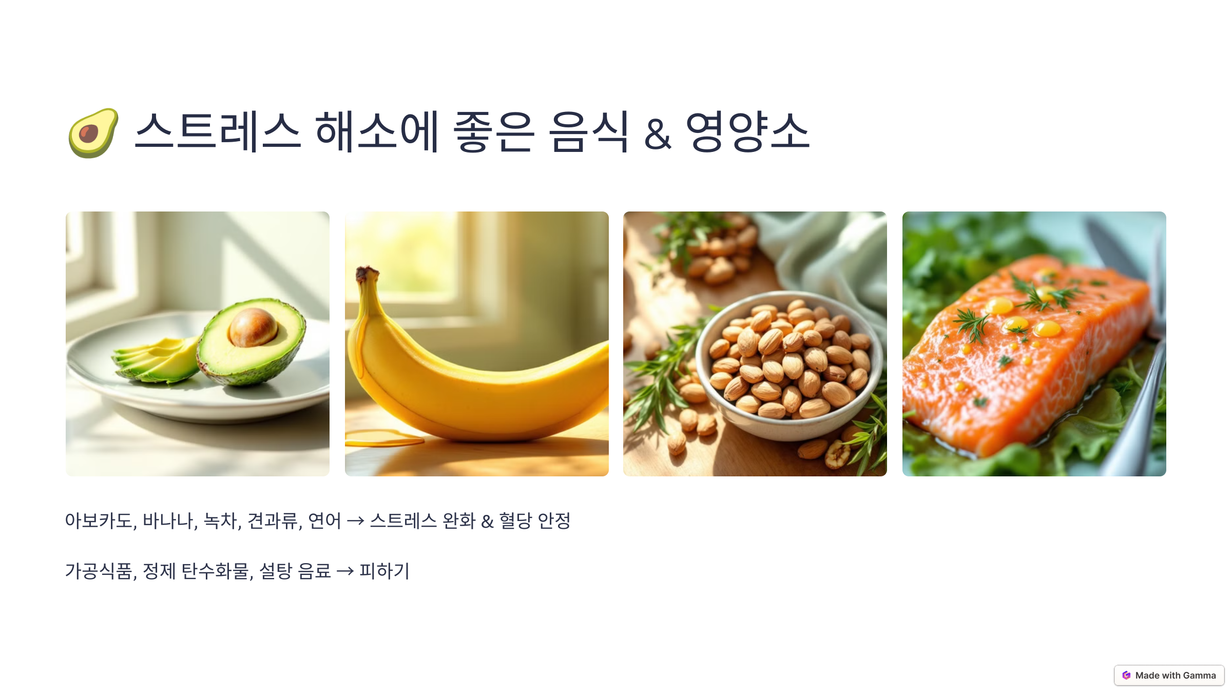 • 🥑 아보카도: 건강한 지방 & 코티솔 감소 효과