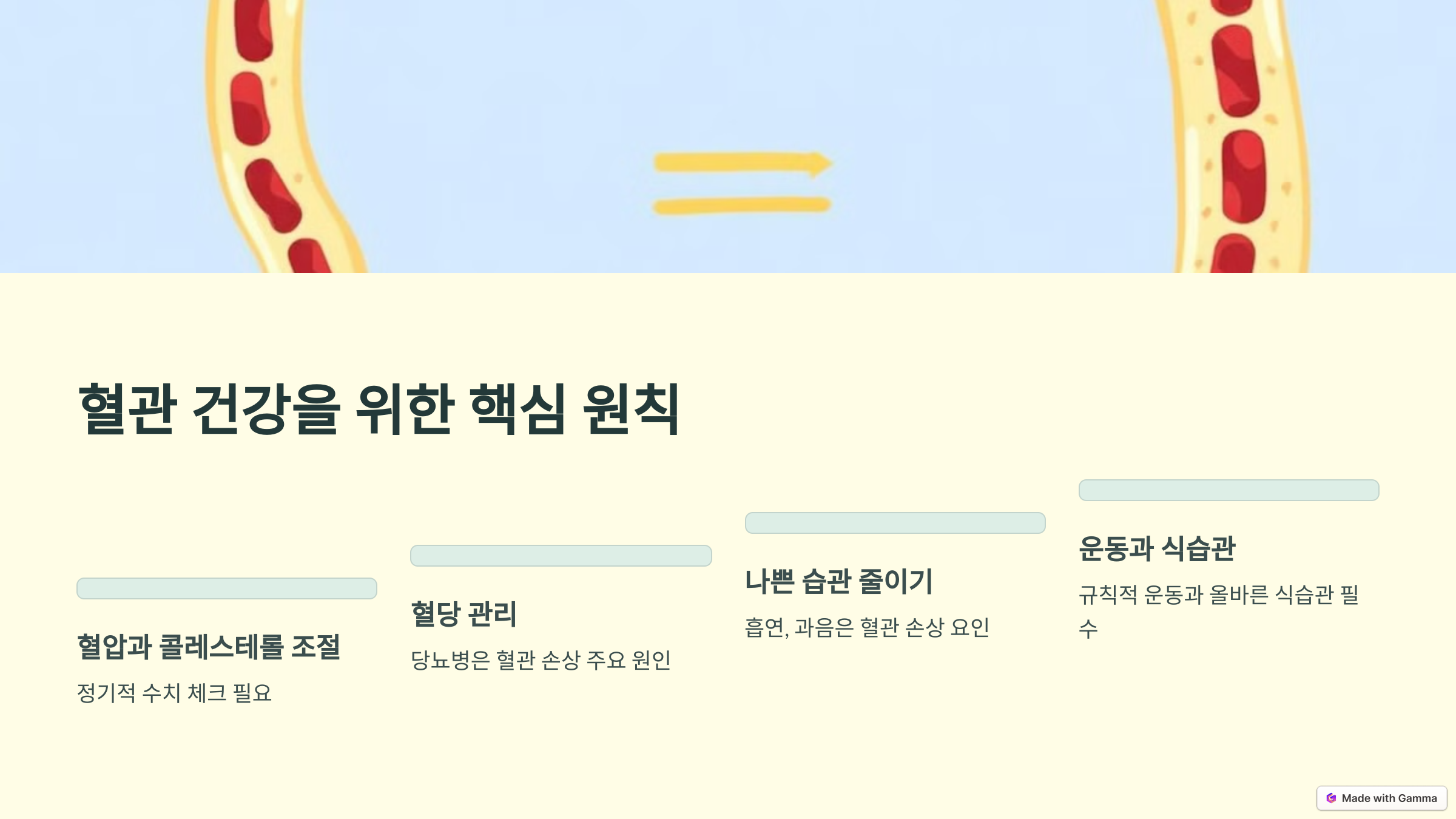 - 건강한 혈관을 위해서는 규칙적인 운동과 올바른 식습관이 필수적입니다.