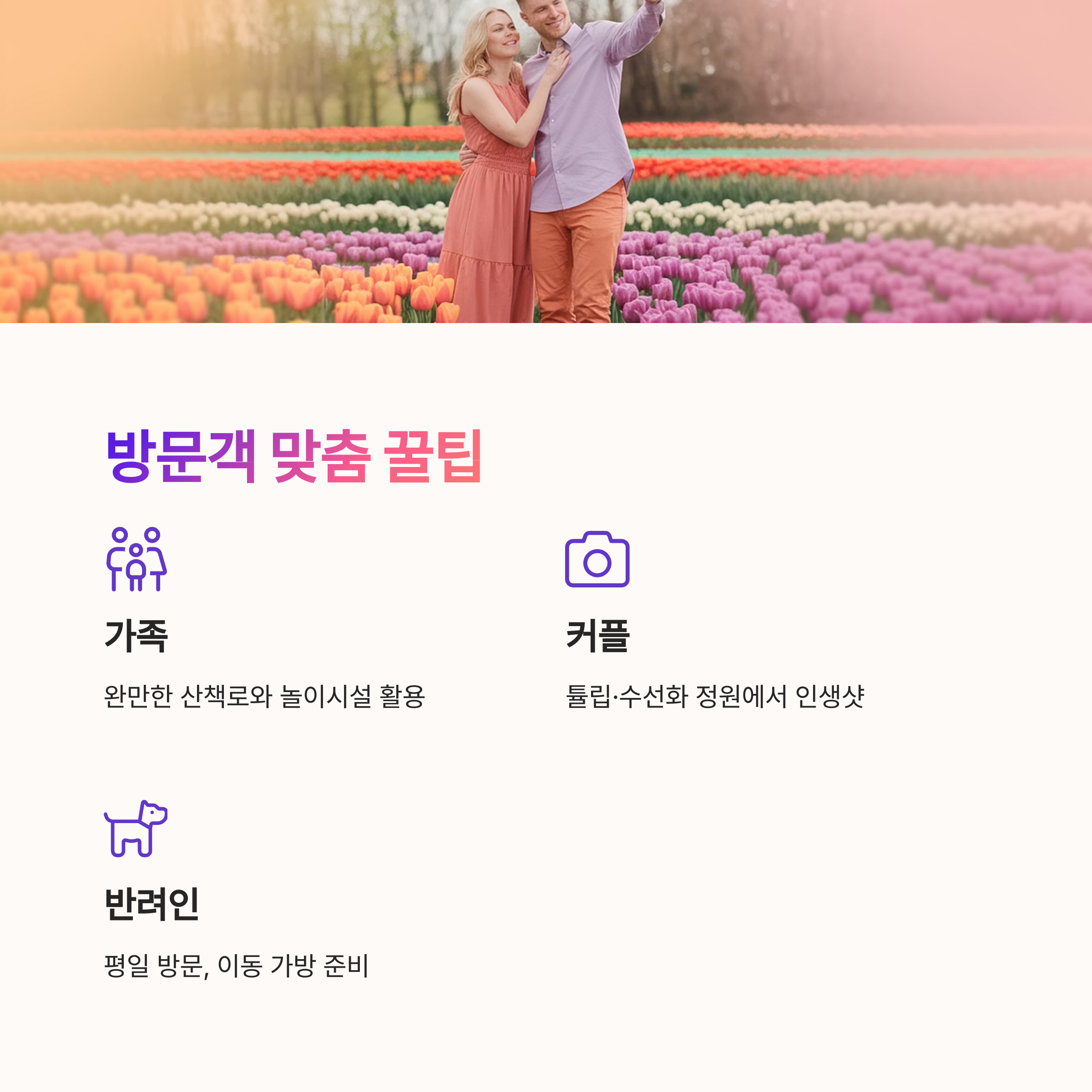 이곳은 특히 튤립과 수선화가 아름다운 꽃 명소로 알려져 있는데요, 생생한 정보와 팁도 함께 드릴게요.