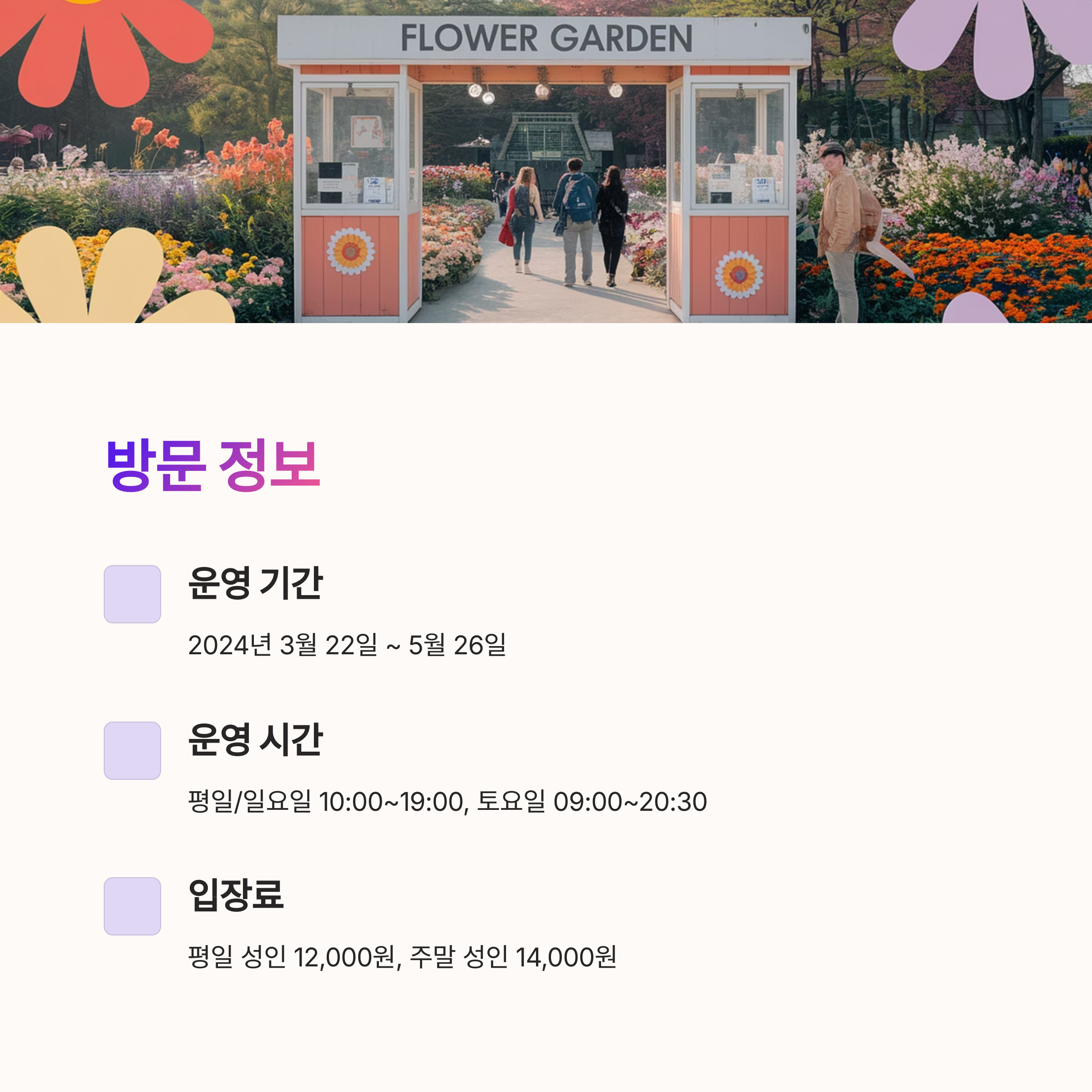 이곳에서는 계절의 변화와 꽃의 아름다움을 함께 경험하며 특별한 추억을 쌓으실 수 있습니다.