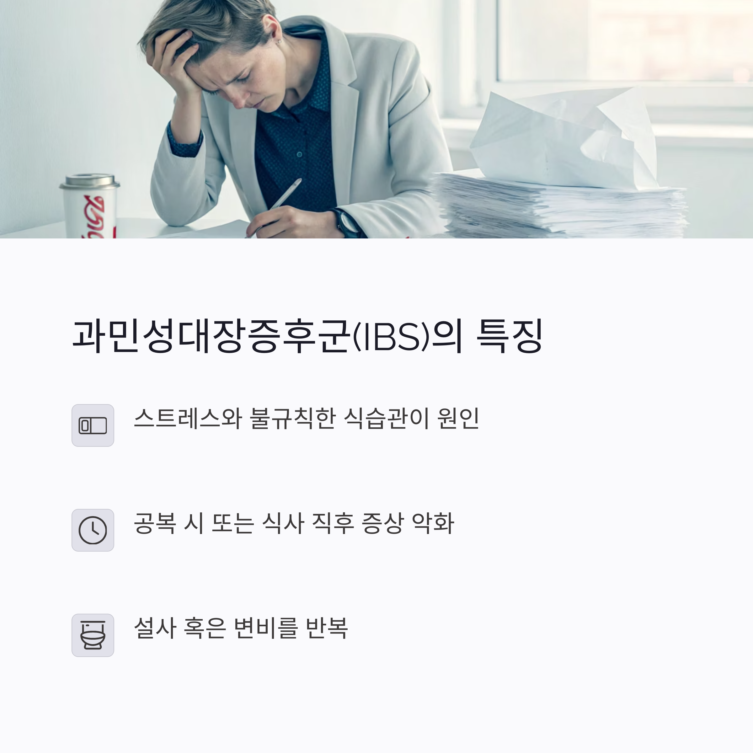 요즘 들어 아침에 일어나면 배가 콕콕 찌르듯 아픈 경우가 많죠? 특히 식사 전 혹은 아침에 화장실을 자주 가는 습관이 있다면 과민성대장증후군(IBS)을 의심해볼 수 있습니다.