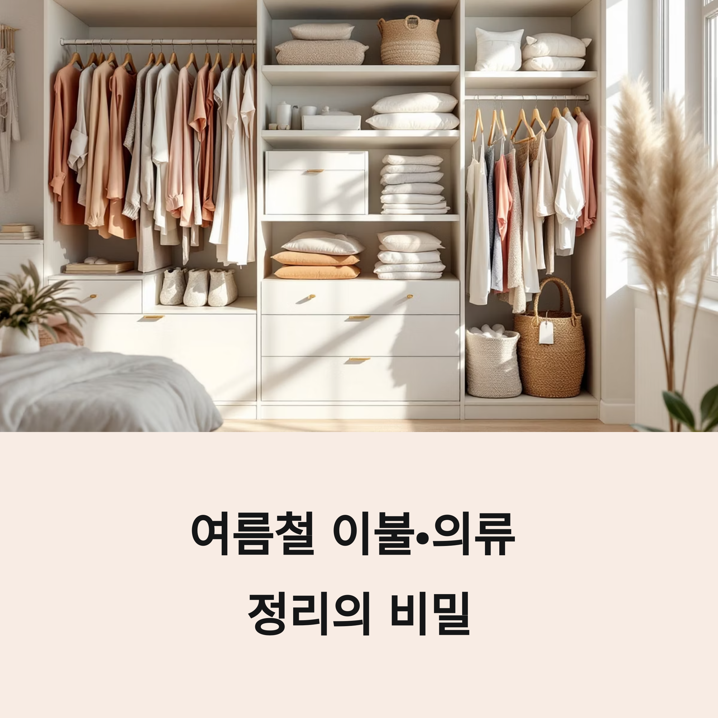 여름철 이불과 옷가지를 깔끔하게 정리하려면 세탁 → 건조 → 분류 → 도구 활용 → 보관 환경 조성까지 일련의 과정을 체계적으로 실행해야 합니다.