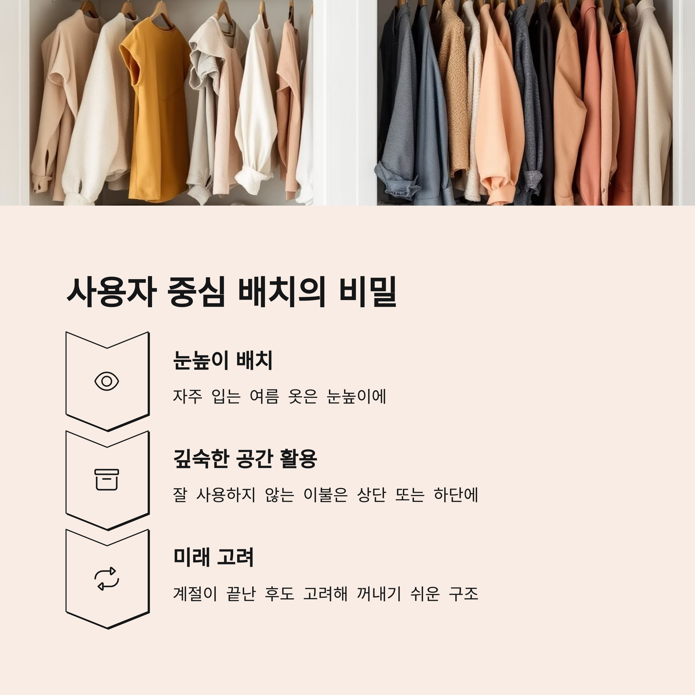 정리만 잘해도 옷장과 수납장의 효율이 확연히 달라집니다.