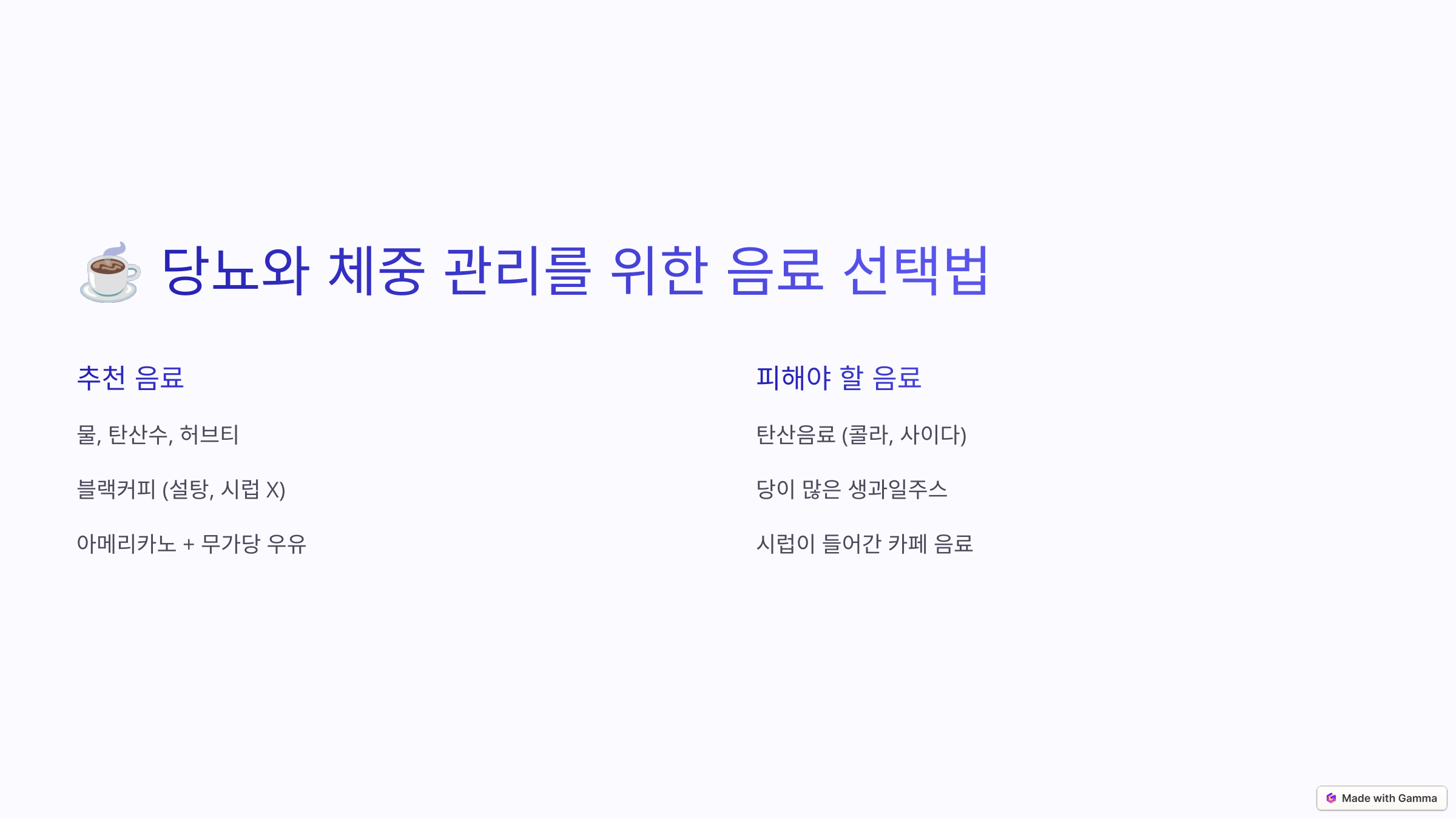 ☕ 당뇨와 체중 관리를 위한 음료 선택법