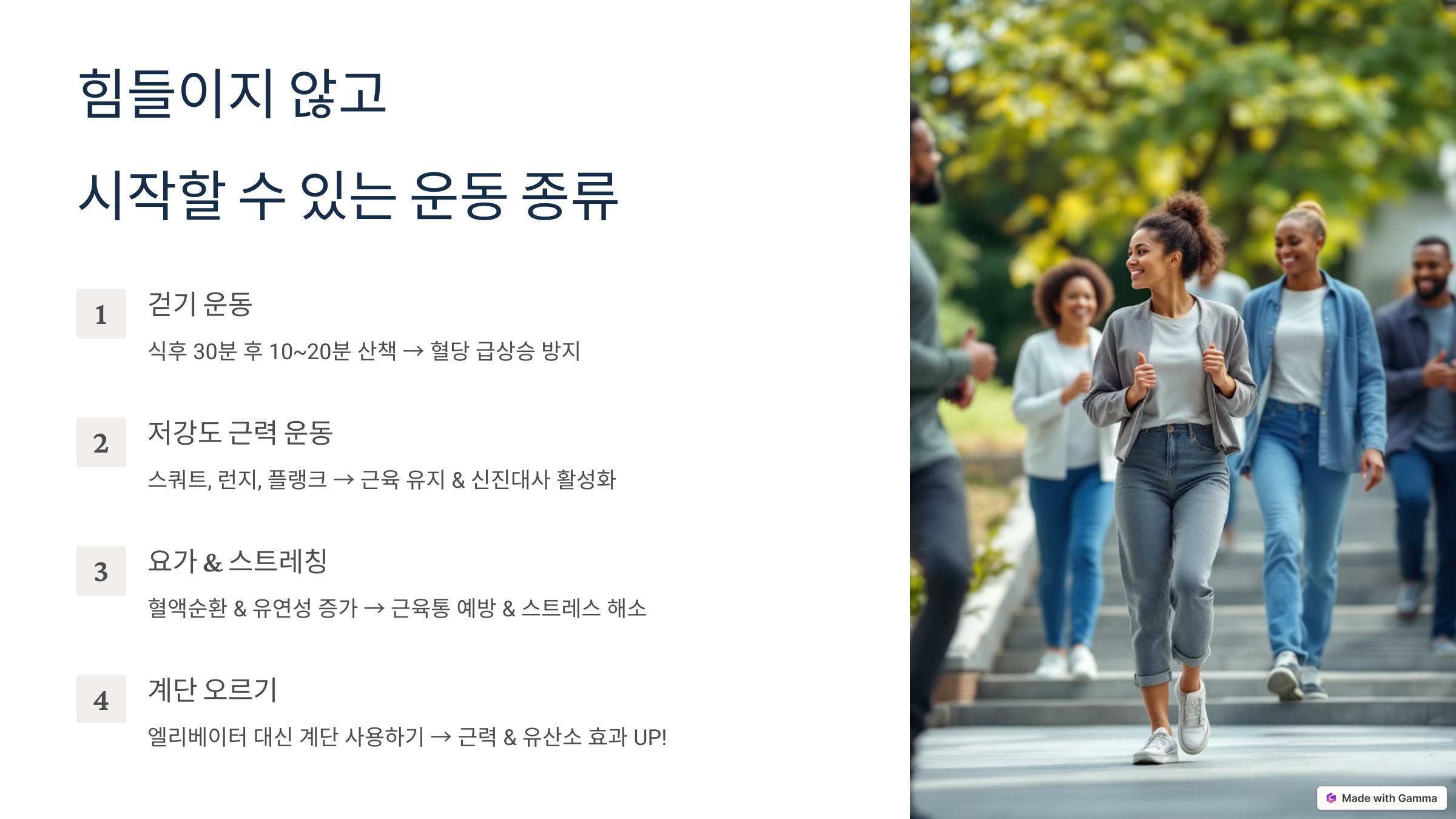 👉 무리하지 않고 일상 속에서 자연스럽게 할 수 있는 운동을 선택하는 것이 중요!