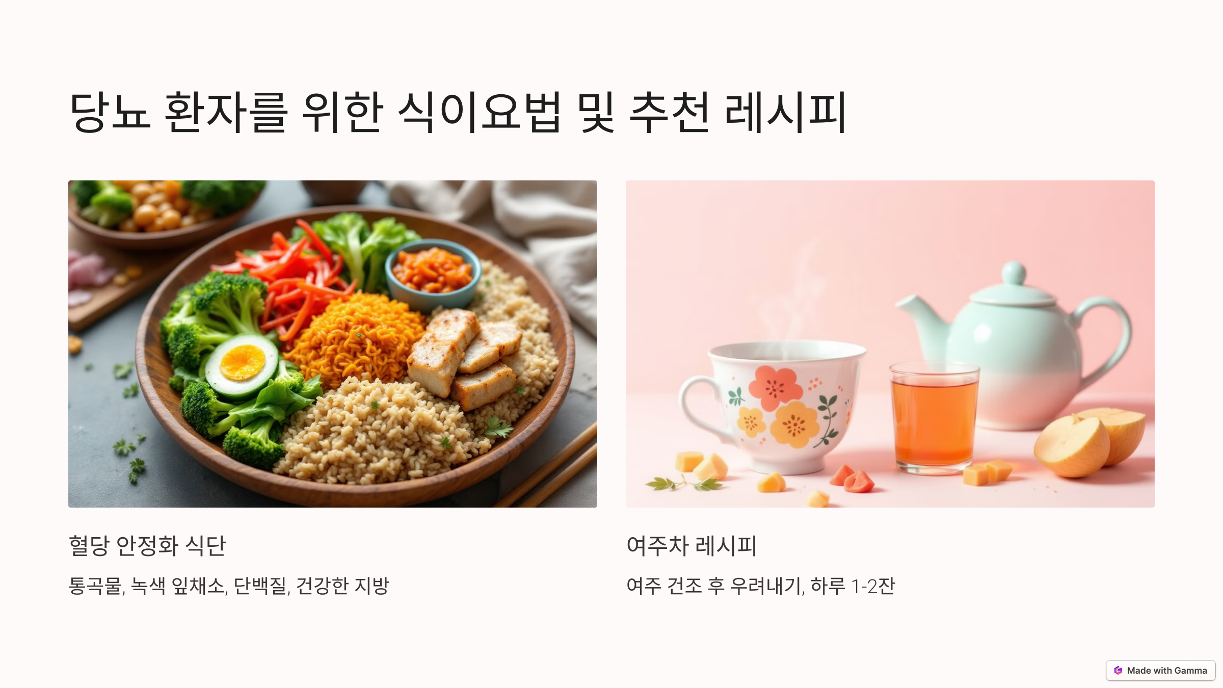 - 당뇨 환자를 위한 식이요법 및 추천 레시피