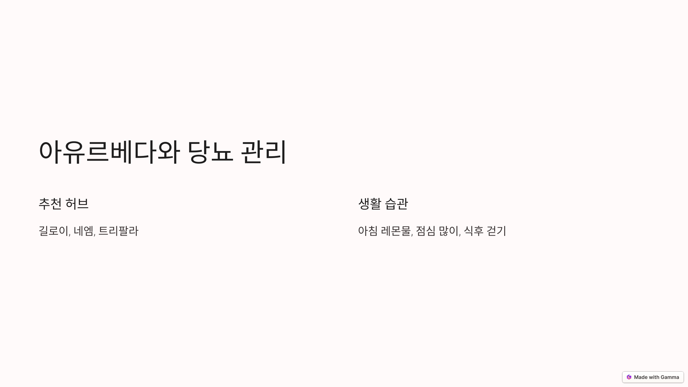 특히 한방 치료, 영양요법, 허브, 명상 등은 혈당 조절을 돕고, 부작용을 최소화하는 데 유용한 보조적 방법이 될 수 있습니다.