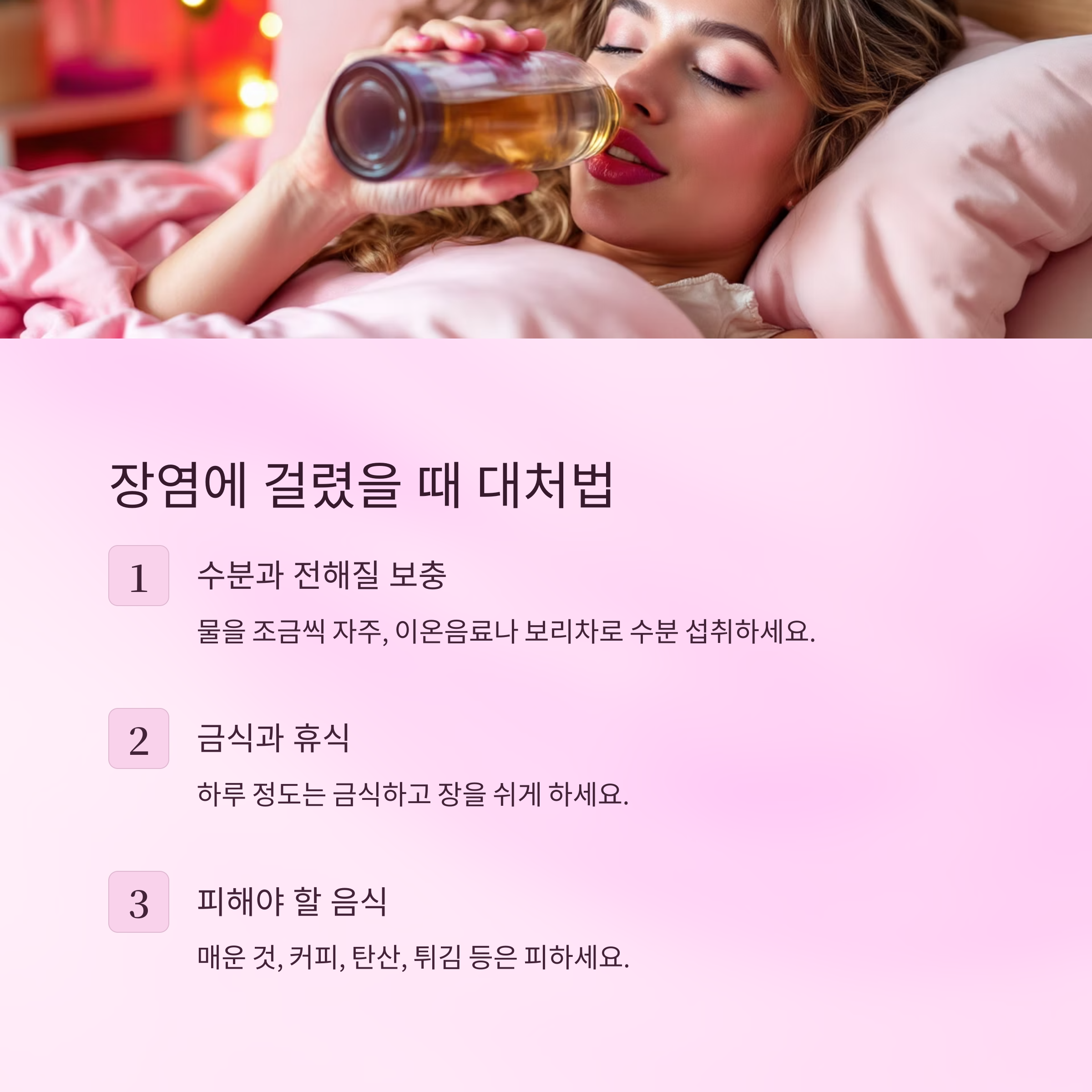 장염에 걸렸다면 무엇보다도 '수분 보충'이 가장 중요합니다. 저는 어제 하루 이온음료와 연한 소금물로 겨우 탈수를 막았어요.