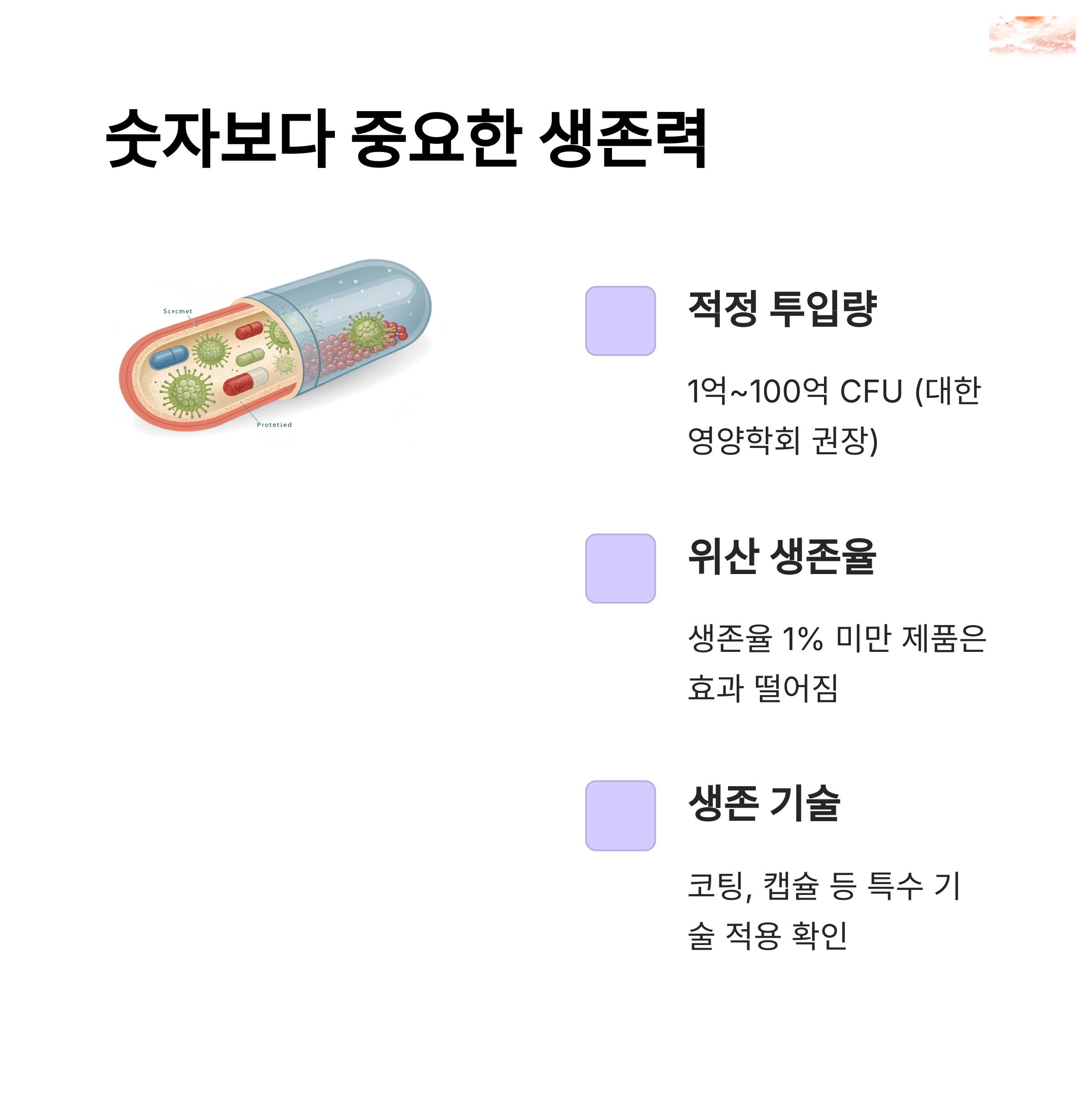 "제품 설명에 '장까지 생존', '위산에서 보호' 문구가 있는지 꼭 확인하세요"