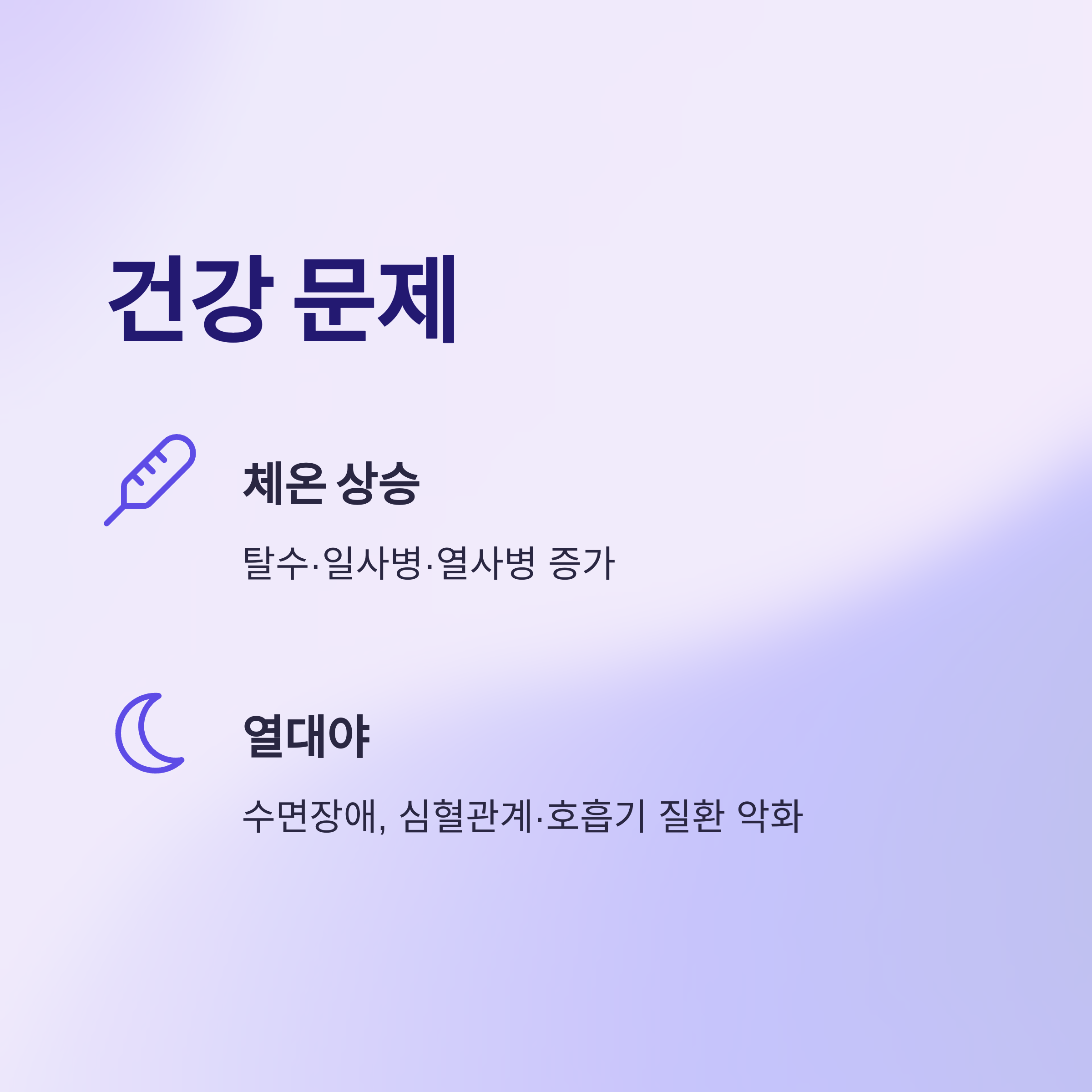 - 열대야로 인한 수면장애, 심혈관계·호흡기 질환 악화