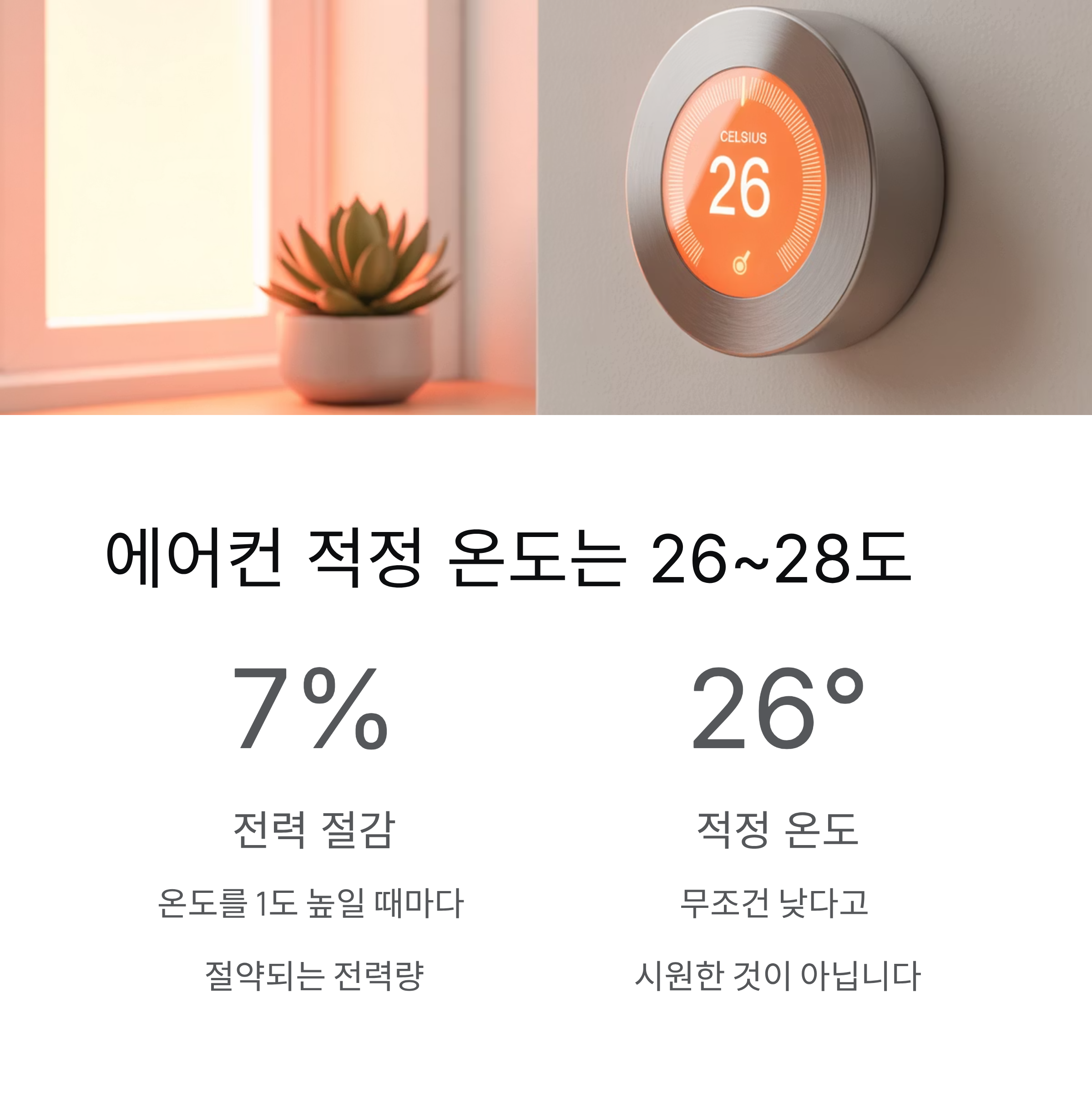 1. 에어컨 온도는 26도~28도 유지가 정답