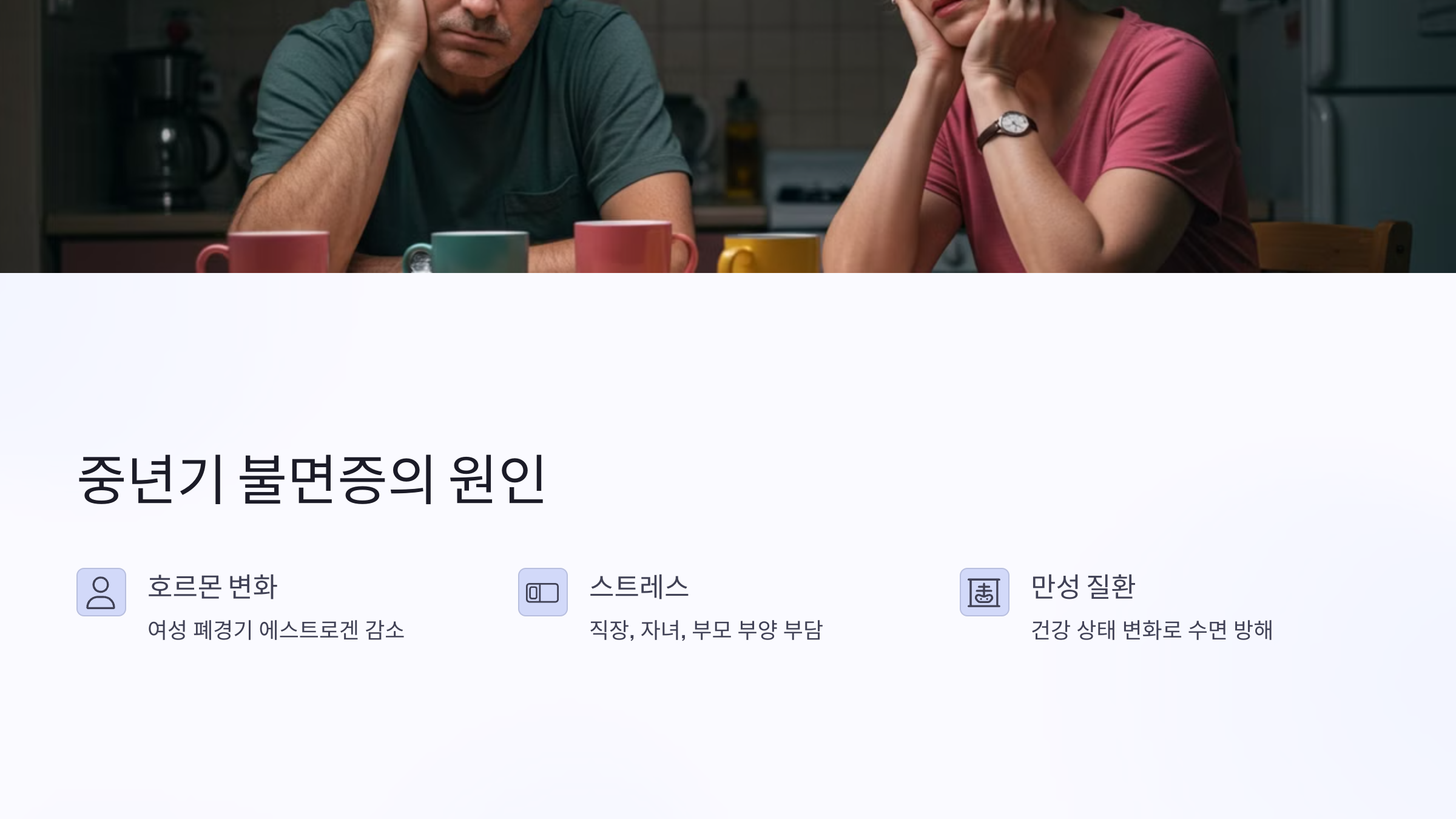 어느 날부터인가 자고 일어나도 개운하지 않고, 잠들기까지 한참 뒤척이다가 겨우 잠이 드는 일이 반복된다면 불면증이 시작된 걸 수도 있어요. 특히 40대 이후 중년 시기에는 신체 변화와 스트레스, 생활 습관 등이 복합적으로 작용하면서 수면의 질이 확 떨어지는 경우가 많습니다.