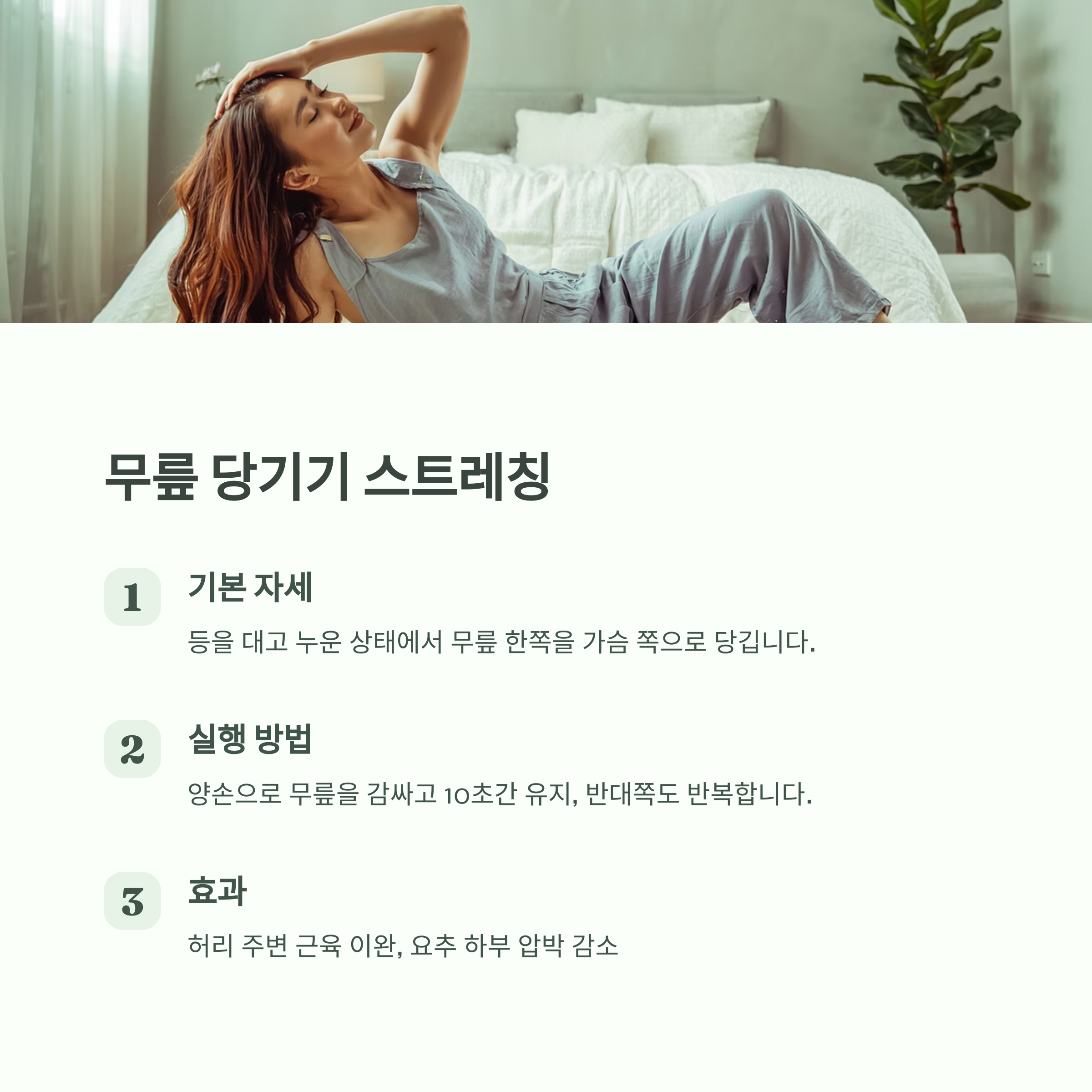 침대에서 단 5분, 이 루틴만 실천해도 하루 종일 허리 부담이 훨씬 줄어드는 걸 느끼실 거예요.