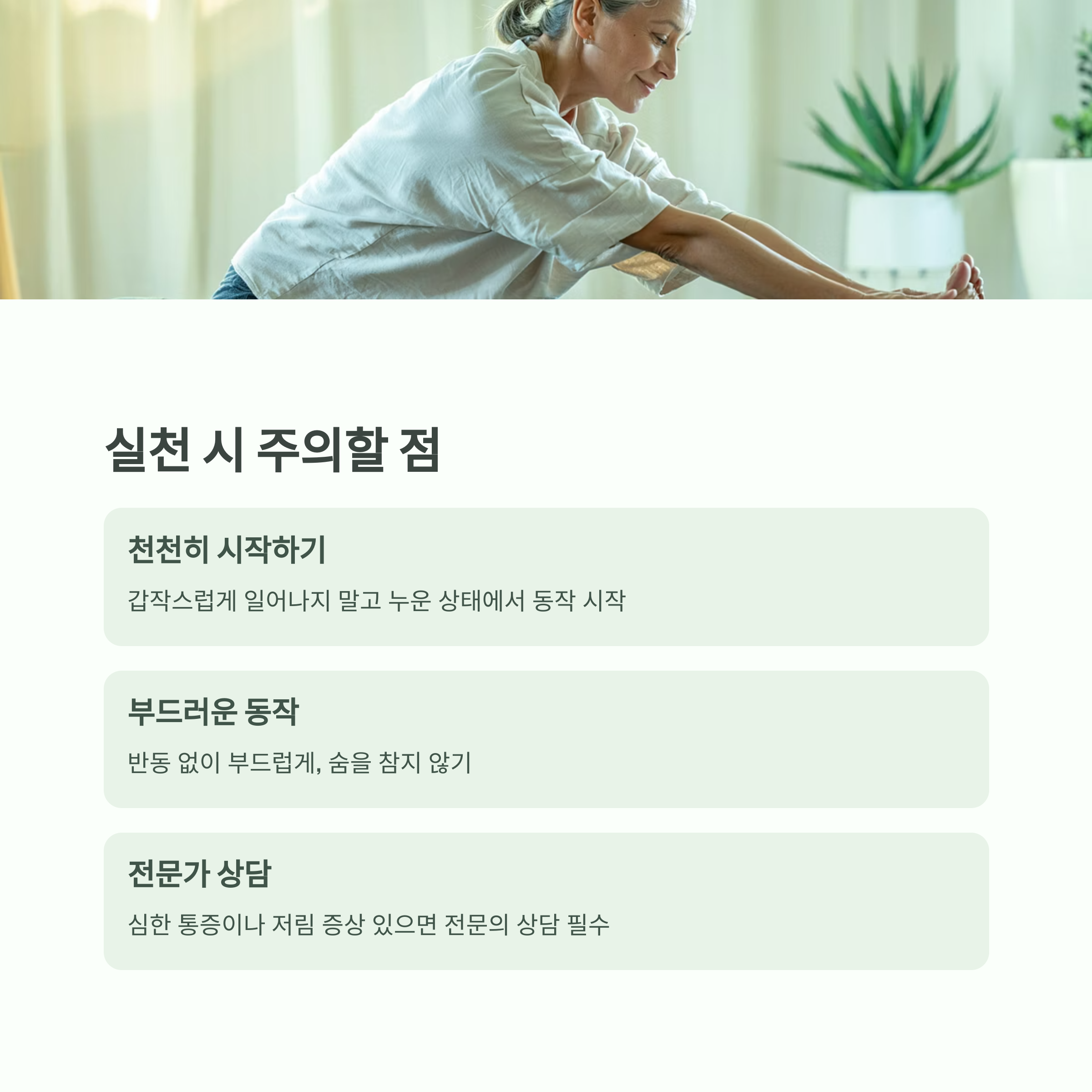 - 심한 통증이나 저림 증상 있으면 전문의 상담 필수