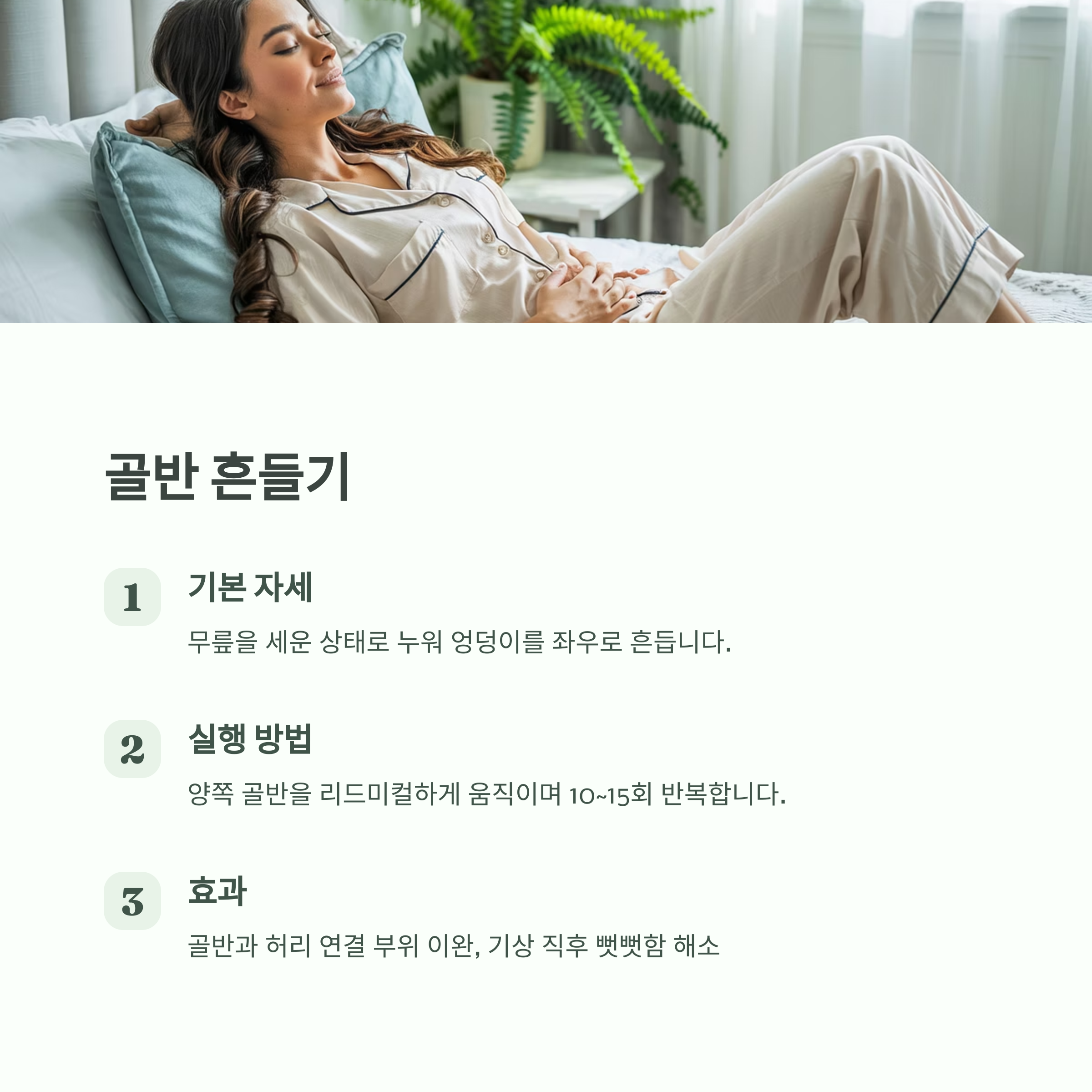 하루의 첫 움직임이 허리를 지키는 습관이 될 수 있습니다.